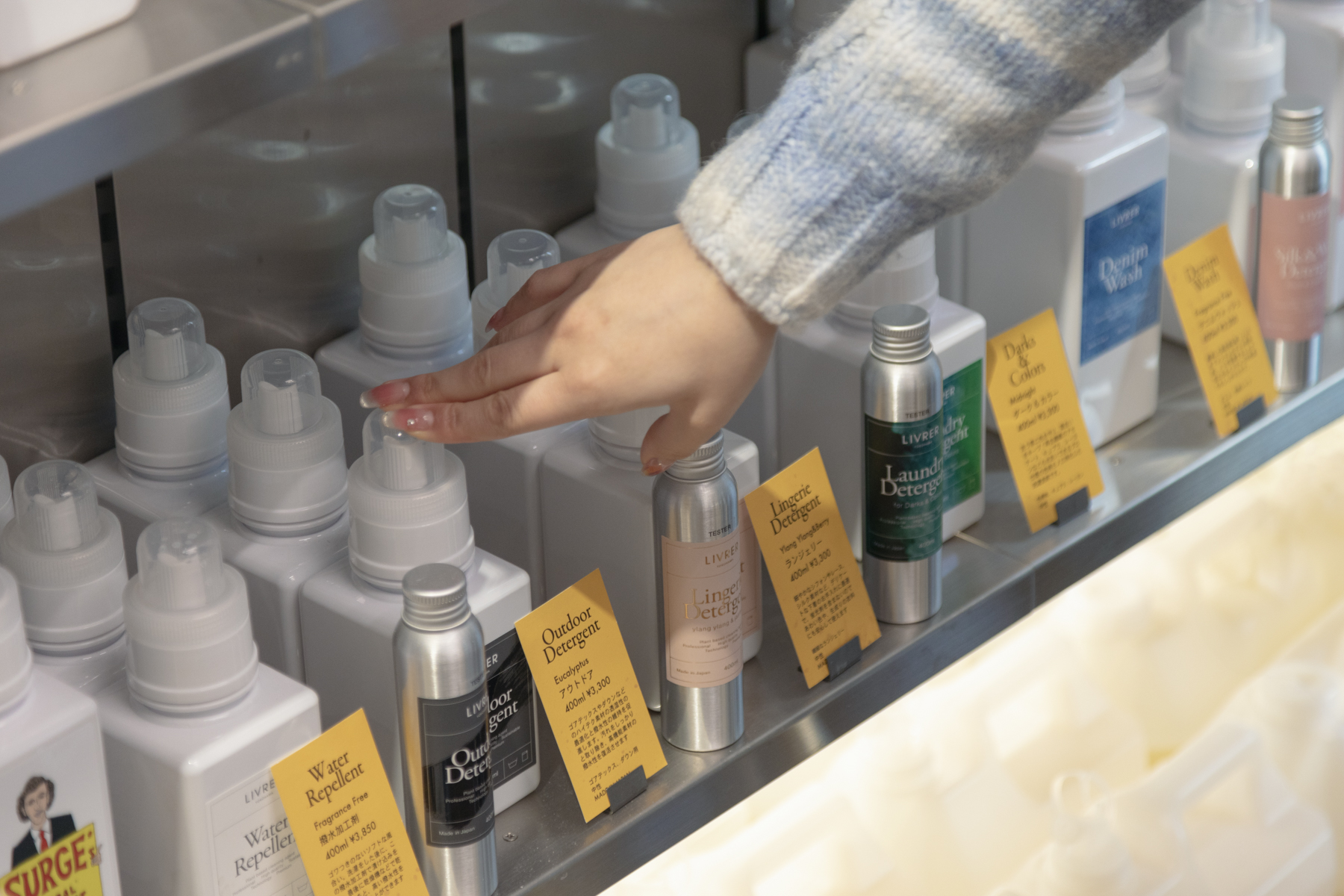 ご自身のボトルを持ってきてもらえれば、必要な分だけお分けできます。いろいろな洗剤を少しずつ試せるのがメリットかと。