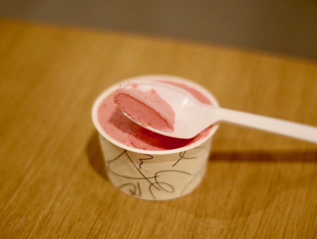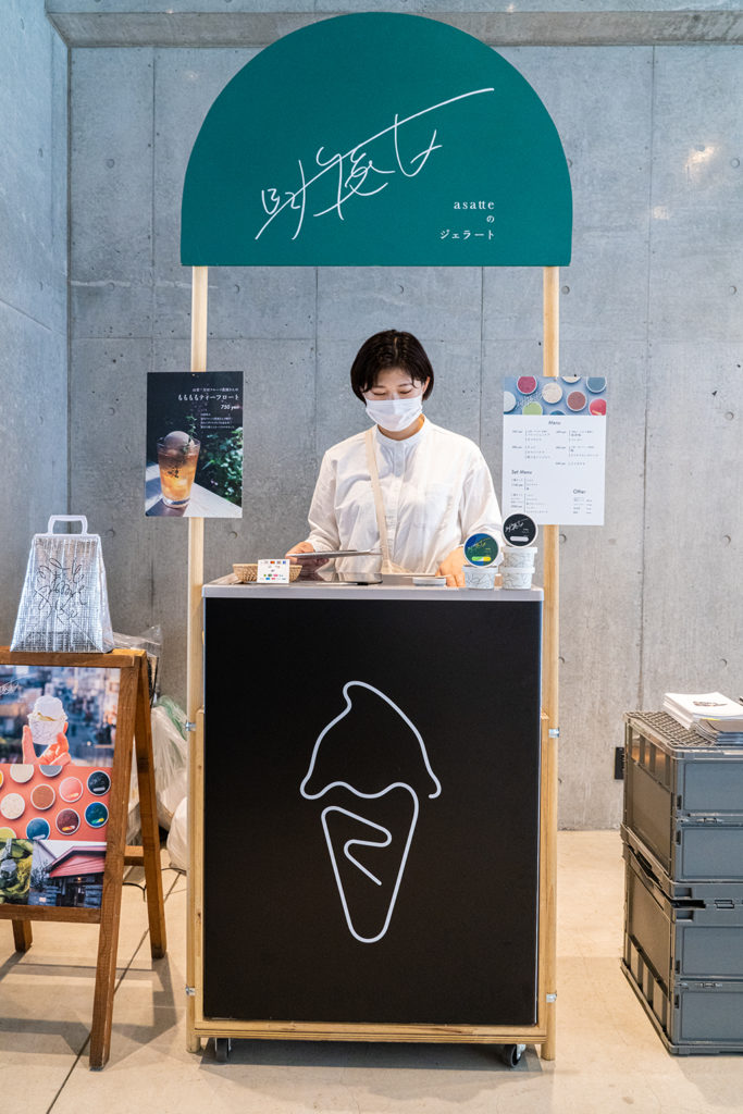 東京谷中のお寺と住宅に囲まれた路地の一角にあるという『asatteのジェラート』さんへ。今回は季節のフルーツを使った限定のジェラートや定番シリーズのジェラートなどを販売していて、 当日限定フロートもとってもおいしそう。私は「ライチフランボワーズ」のジェラートをセレクト。酸味の効いたスッキリフルーティな味わいで癒されます。。。「今日の一番人気はミルクですね。イベント限定の『ももももティーフロート』も大好評でした!」(北川さん)
