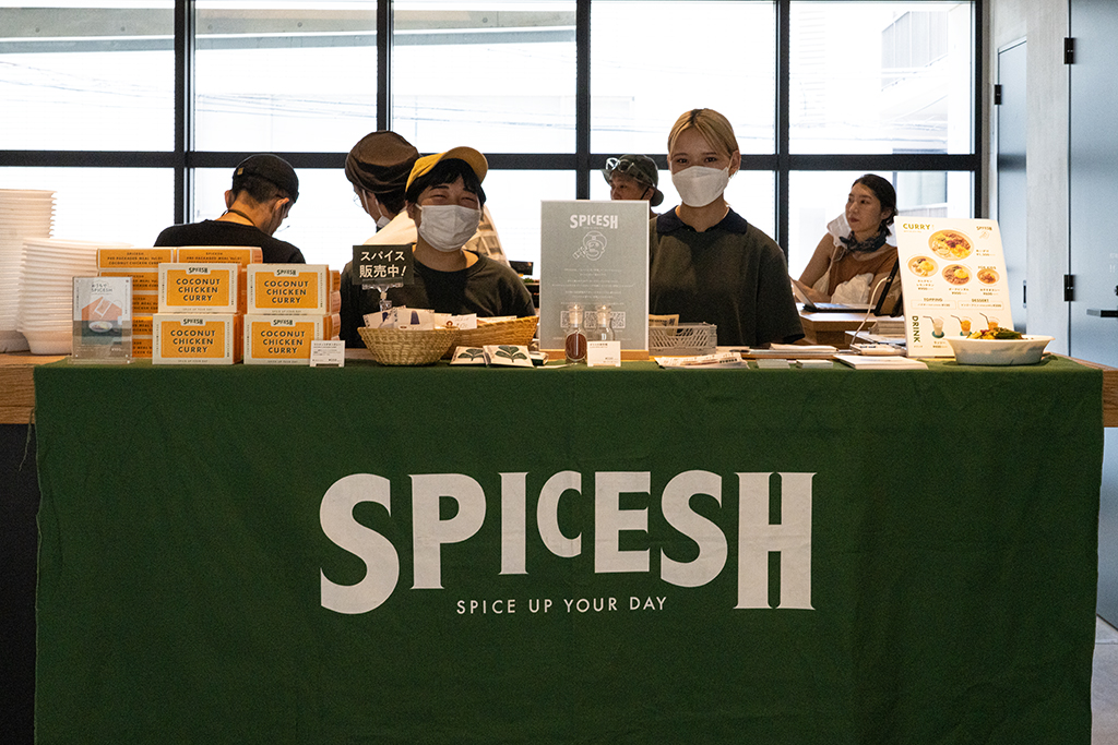 『IRU幡ヶ谷』さんと肩を並べてスパイシーな香りを放っていたのは『SPICESH(スパイセッシュ)』さん。実はここ、『asatteのジェラート』と姉妹店なんですって。「スパイス」を「摂取」で「スパイセッシュ」が店名の由来だそうでなんとも気になる存在。イベントでは定番のポークビンダルーと人気のカルダモンレモンチキンカレー、お子様向けのカレーを提供してくれていました。2階の出店者さんも何人か食べているところをお見かけしたのでみなさん“摂取済み”のようです。コロナ禍で販売開始したというおうちでスパイスカレーが楽しめるオリジナルスパイスやレトルトカレーも大好評!