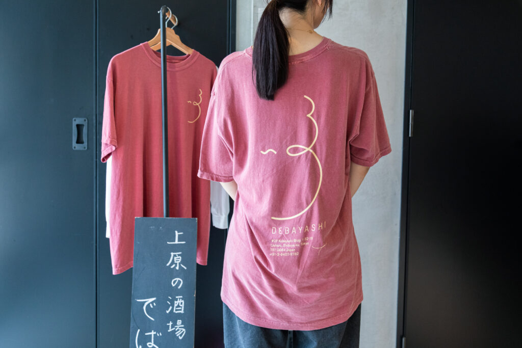 入り口を入ってすぐに出迎えてくれたのは、ACT LOCALLY 編集部も忘年会などでよくお世話になっている、「上原の酒場 でばやし」さん。この日は縁日用メニューとして、通常営業では提供していないお稲荷さんを始め、オーダー後に揚げたてを提供してくれるアンチョビバターのフライドポテト、ジューシーで食べ応え抜群なジンジャーソーセージが並んでいました。同時販売されていたオリジナルTシャツもカラーバリエーションがあり、バックのデザインも目を惹きます。スタッフさんの後ろ姿と一緒に1枚スナップ。