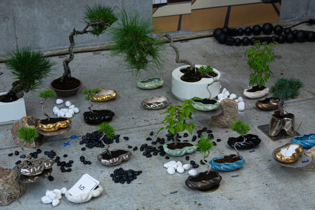 床に整然とディスプレイされていた、手の平サイズの美しい盆栽は、日本国内の盆栽職人によって丁寧に育てられた盆栽と、陶芸・彫刻作家と生み出す「KOKON bonsai」さんのオリジナル盆栽「浮雲 Ukigumo」。”育てる難しさが頭に浮かぶ盆栽ですが、気負わず今の生活スタイルの中で一緒に過ごしていけるのがKOKON bonsaiの魅力”と謳われている通り、小ぶりな盆栽の数々は初心者でもトライしてみたくなるサイズ感です。中には盆栽お目当てのお客様もいらっしゃり、盆栽の根強い人気を感じました!