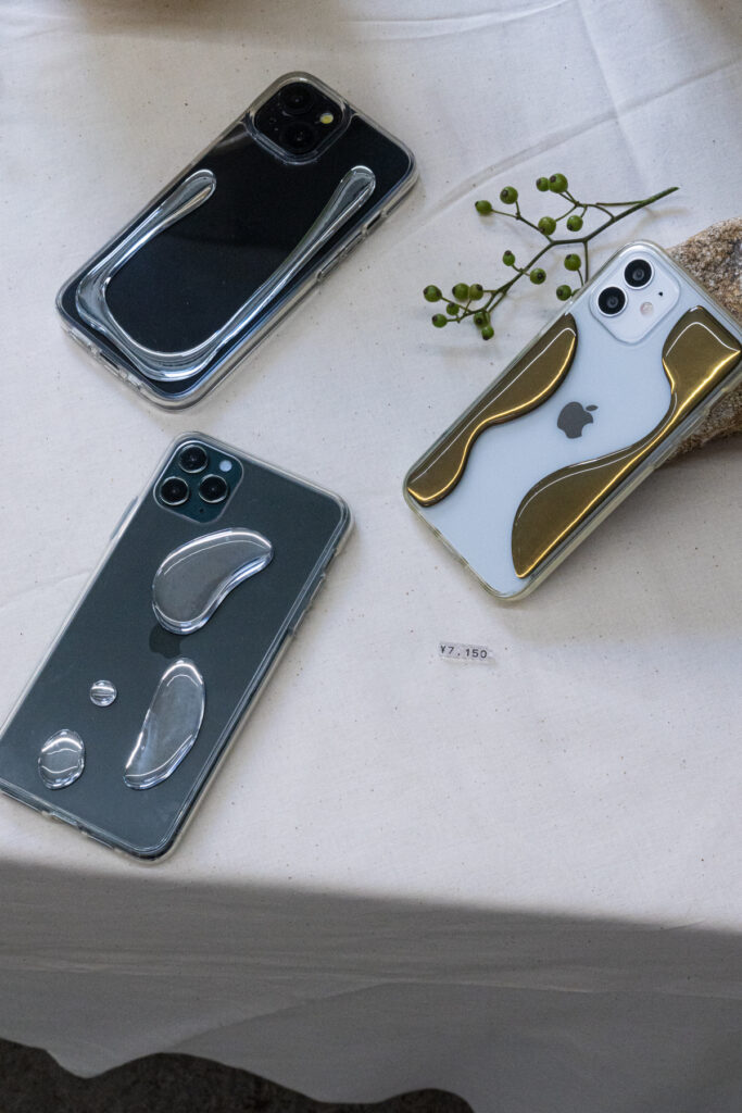 盆栽の左手では、大阪にサロンを構える「Tetote」さんによる予約制のネイル施術と、オリジナルのiPhoneケースの販売がありました。こちらのiPhoneケースは、頭にあるイメージをネイル以外で具現化された作品となるそうで、ぷっくりと浮き上がっているデコレーションやデザインなど、ネイリストさんならではの世界観とセンスを感じます。