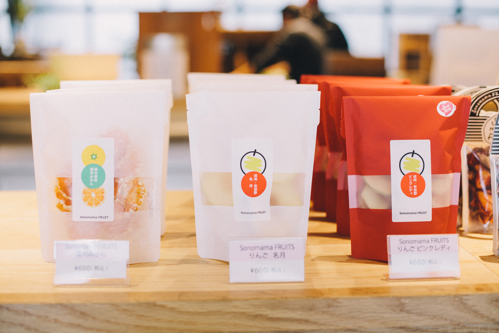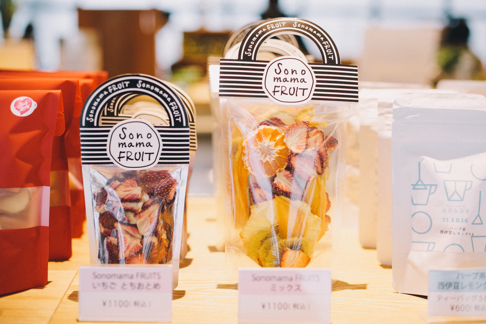 試飲したものをはじめ9種類のお茶を手軽に自宅で味わうことができるティーバッグタイプに加え、完熟のフルーツをそのまま乾燥させたドライフルーツも販売。