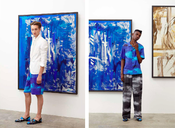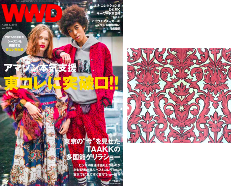 写真右のメンズモデルが着用しているジャケットとパンツの原画制作を担当