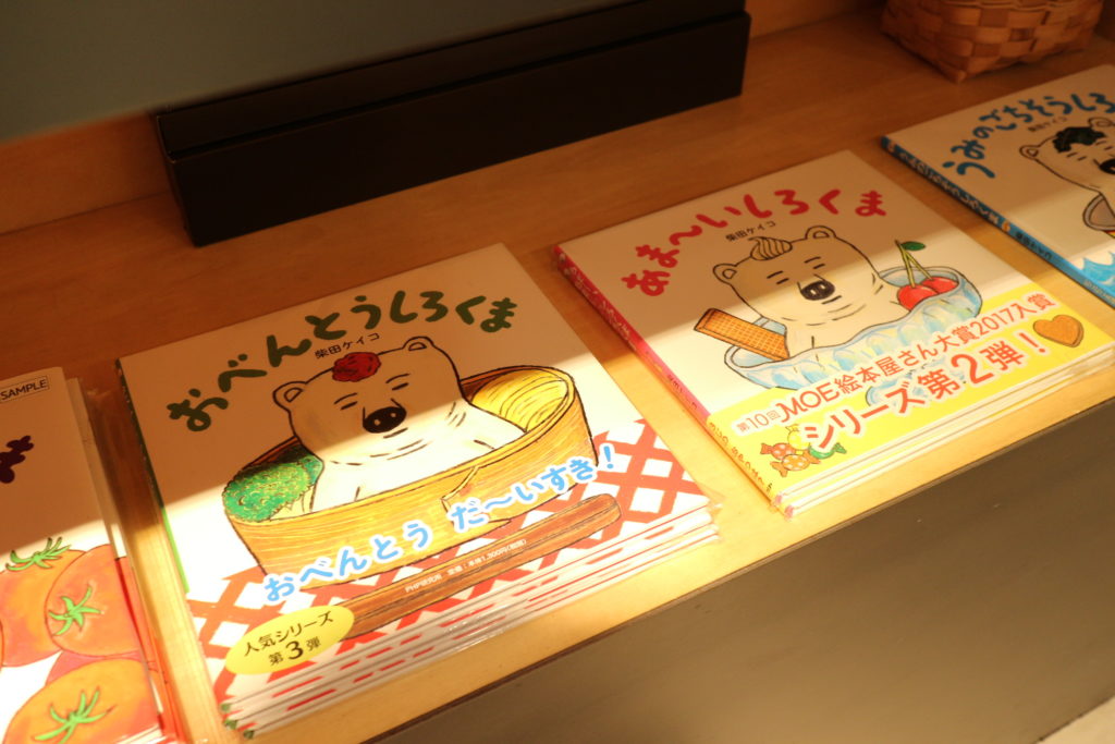 パンの包装紙や、オリジナルバッグのデザインも手がける作家さんの絵本も販売。温かみとユーモアのある作品。