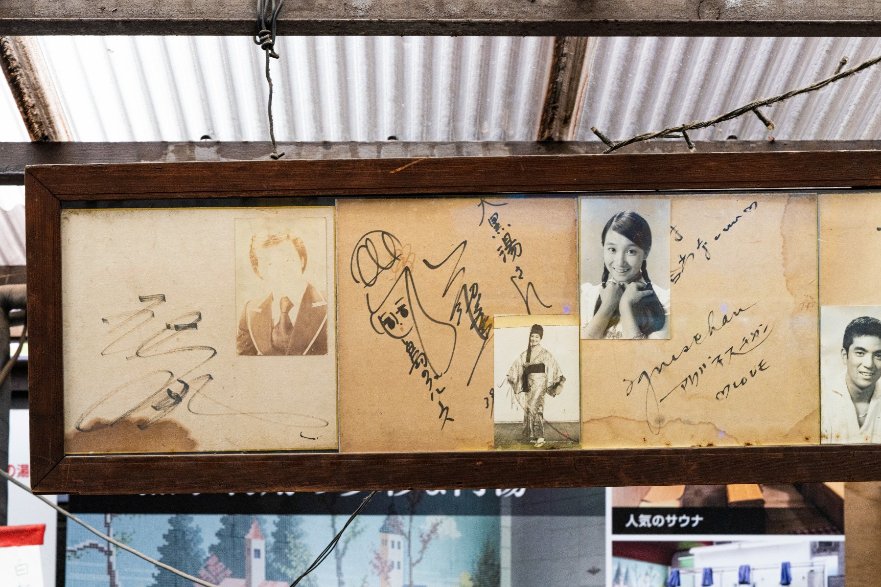 男湯の脱衣所には、歴史を感じさせる有名人のサインや写真などが飾られています