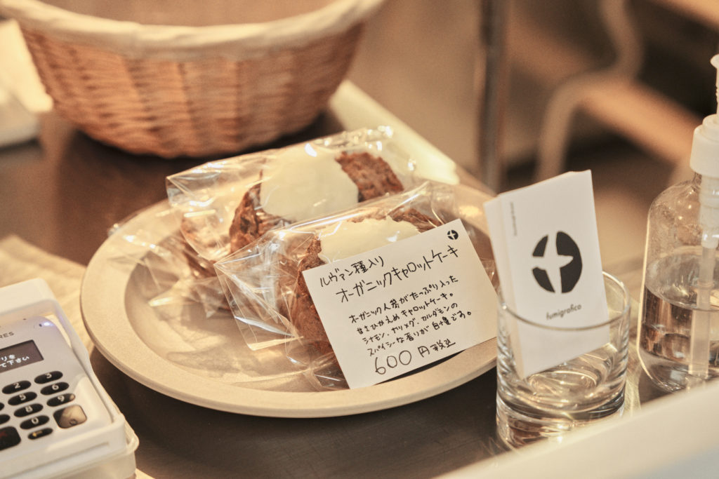 1日1種類だけ、焼き菓子も展開(週4日営業日のうち、2日ごとに焼き菓子のメニューが変わる)。この日はキャロットケーキ。他に、スコーンやブラウニー、プレッツェル、バナナブレッド、グラノーラが登場する日も。