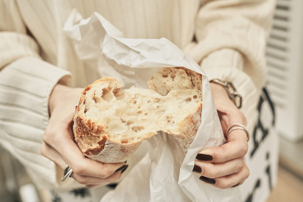 バキッ!と大胆に割ってみると……ハードな表面とは打って変わって、内側はしっとりとしていて、もちもちっと弾力のある生地。まずはトーストせずにこのままの質感・食感を楽しみたい。