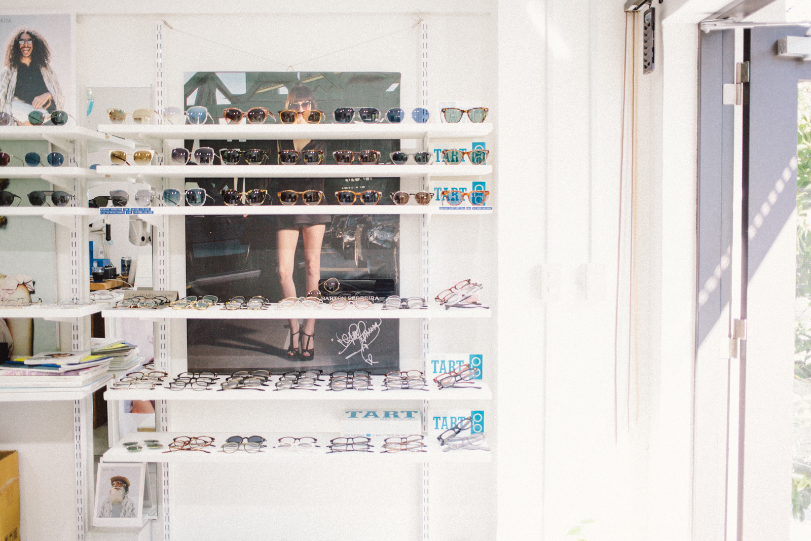 お店の中には、上田さんが選び、世界中から仕入れたさまざまなブランドの眼鏡・サングラスが並んでいます。