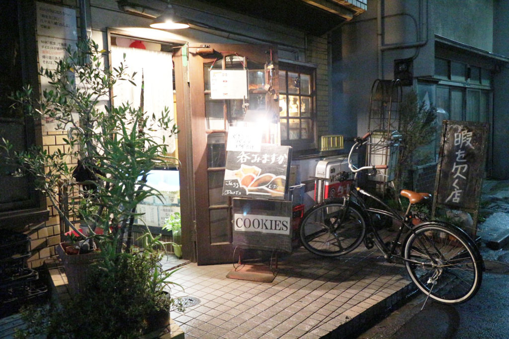 オープンした頃はお菓子のグラム売りが流行っていて、常に20種類くらいのクッキーを作っていたから「狭くても儲かるお店」として雑誌で取り上げられて話題になった時代もあった。その後、次第に景気が悪くなったから、また飲み屋としてお酒や料理を出すようになって今みたいなお店になったんだよ。