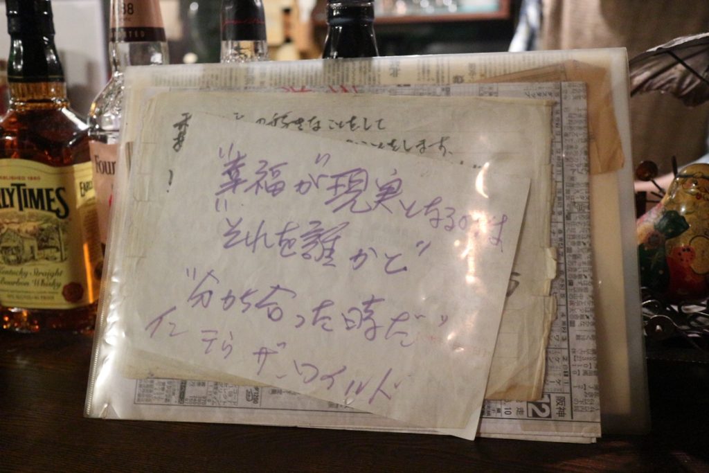「袖振り合うのも他生の縁」ていう言葉があるように、お客さんは前世のどこかで出会って理解できないことがあって別れたけど、きっと何かの縁があってうちに来ていると思う。だからもう一度、ここで語り合いながら理解してみよう!そう思えるとみんな寂しくなくなってくるものなんじゃないかな。