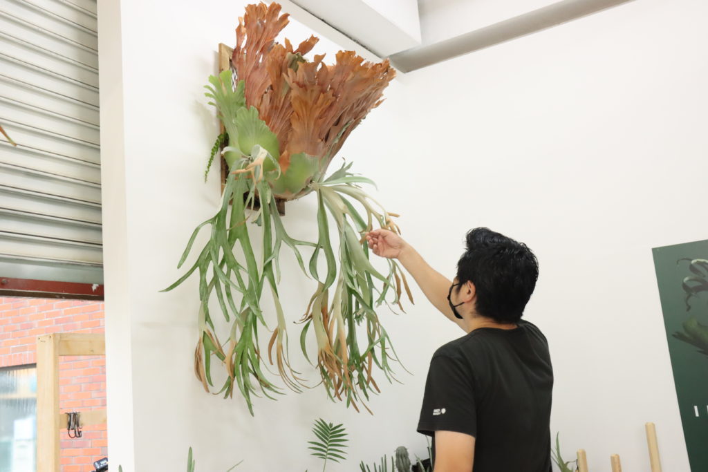 植物自体はディスプレイの仕事で素材としてよく扱っていたので大好きでした。5、6年位前に珍奇植物が流行り出して、いろんな種類を調べたらビカクシダ(コウモリラン)を見つけたんです。