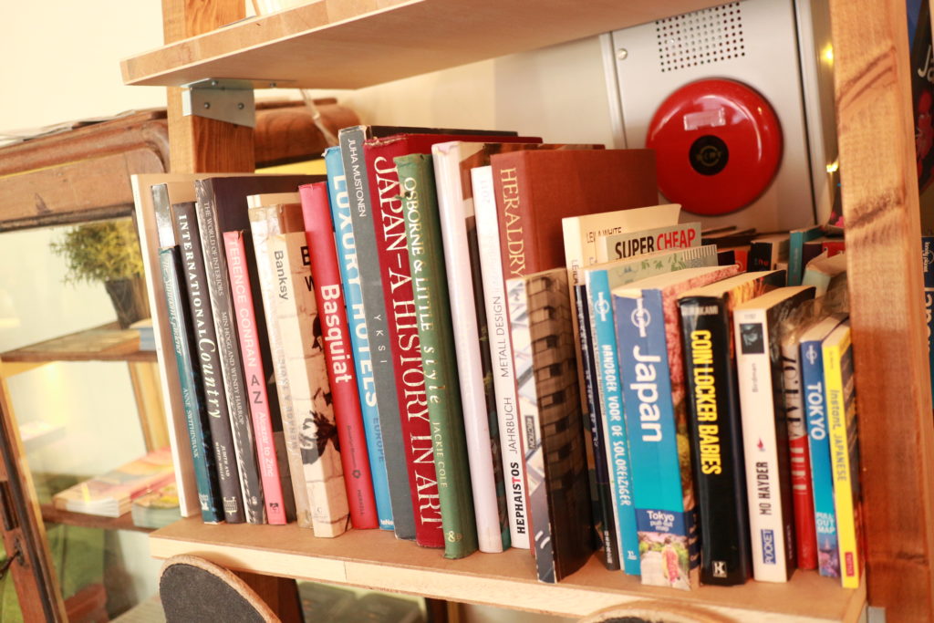 本棚には外国人旅行客のために洋書も並んでいて、コーヒーを飲みながら自由に読書も可能。