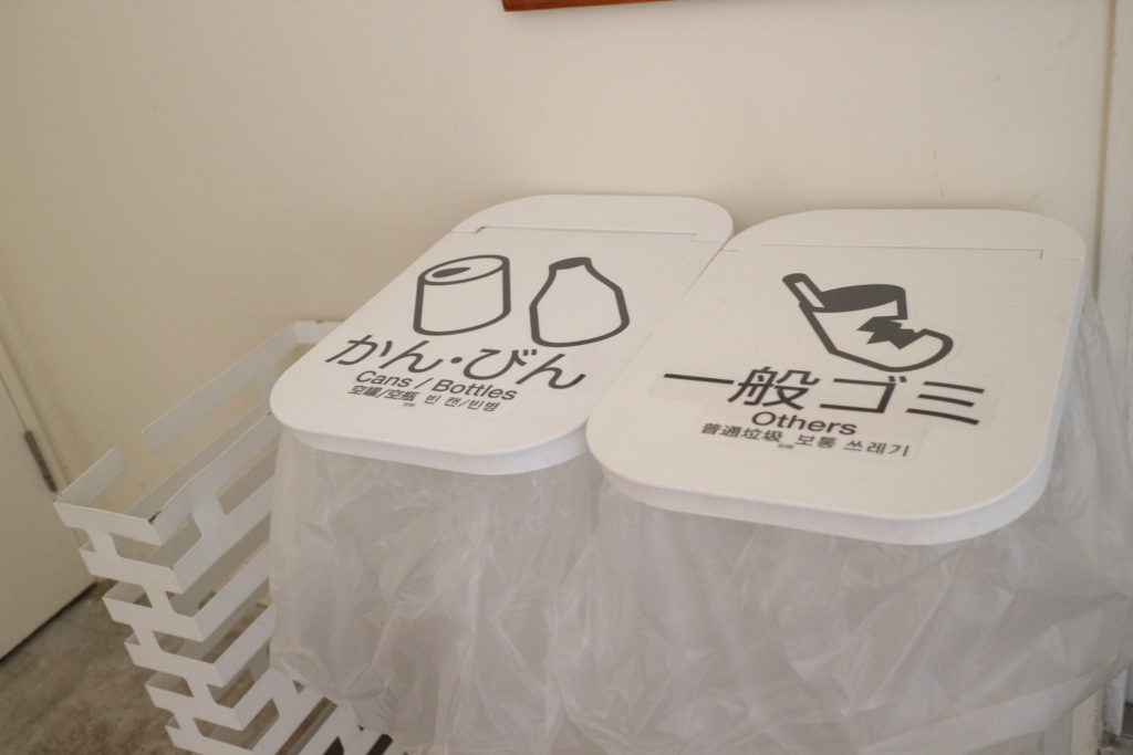 ゴミ箱は、英語だけでなく中国語と韓国語で表記されていて外国人への配慮も。