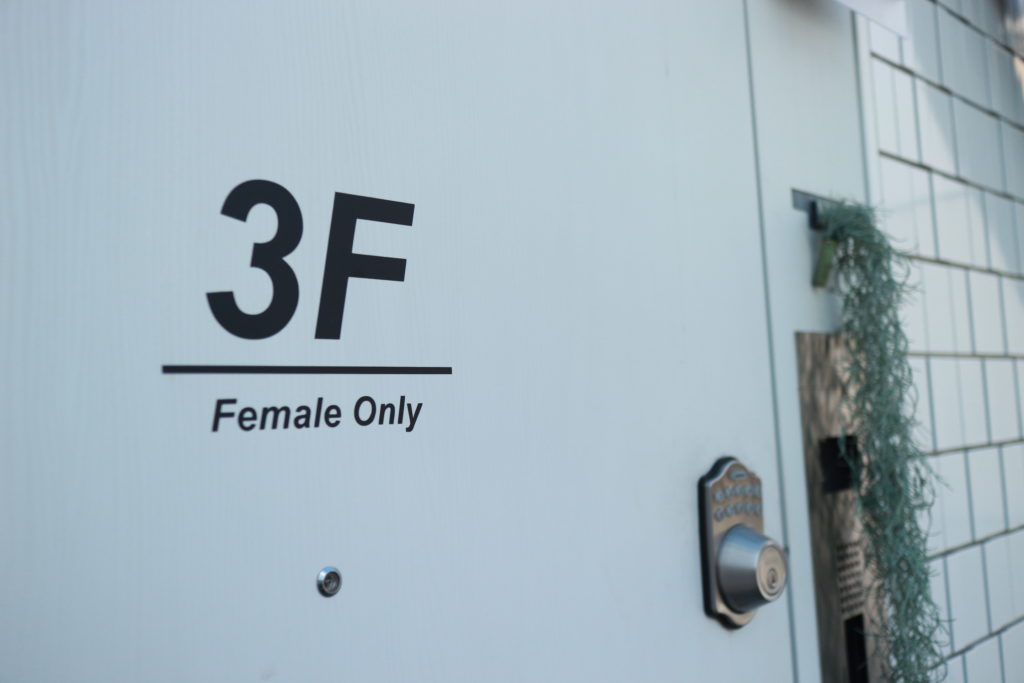 2Fが男女共用、3Fが女性専用。それぞれ屋外からの入り口が分かれているため、女性専用フロアの中で男性客と交わる部分がなく、女性でも安心して泊まれるように設計されています。また、共用部分は24時間セキュリティ管理で万全。