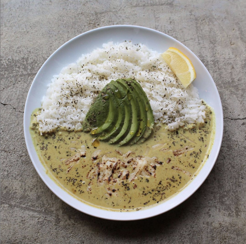 アボカドチーズカレーは、おもわず写真に収めたいくらいフォトジェニックで美味しそう。