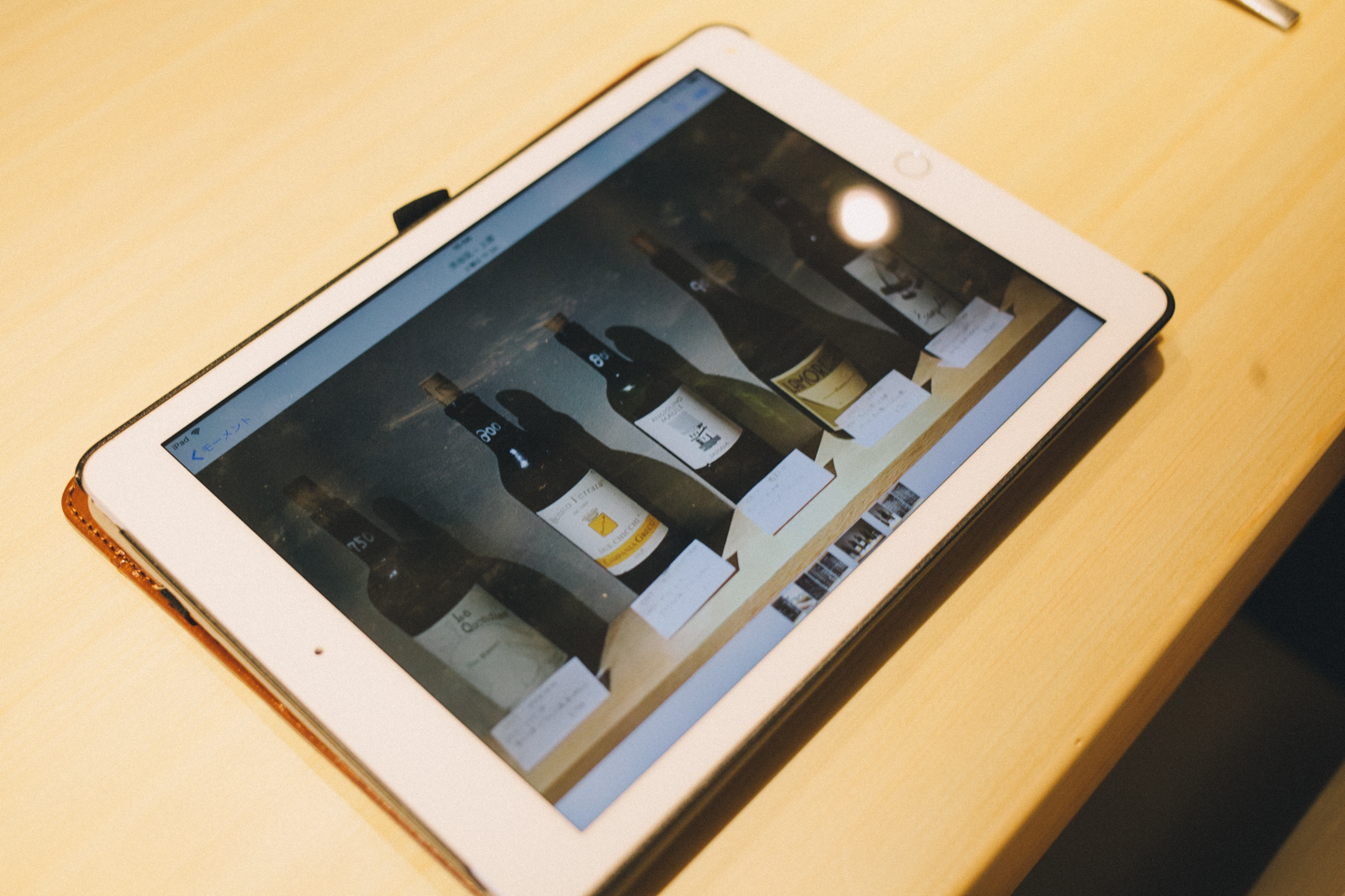 自然派ワインはベストな状態を保つため、セラーにあるものをiPadで画像をみて選びます。
