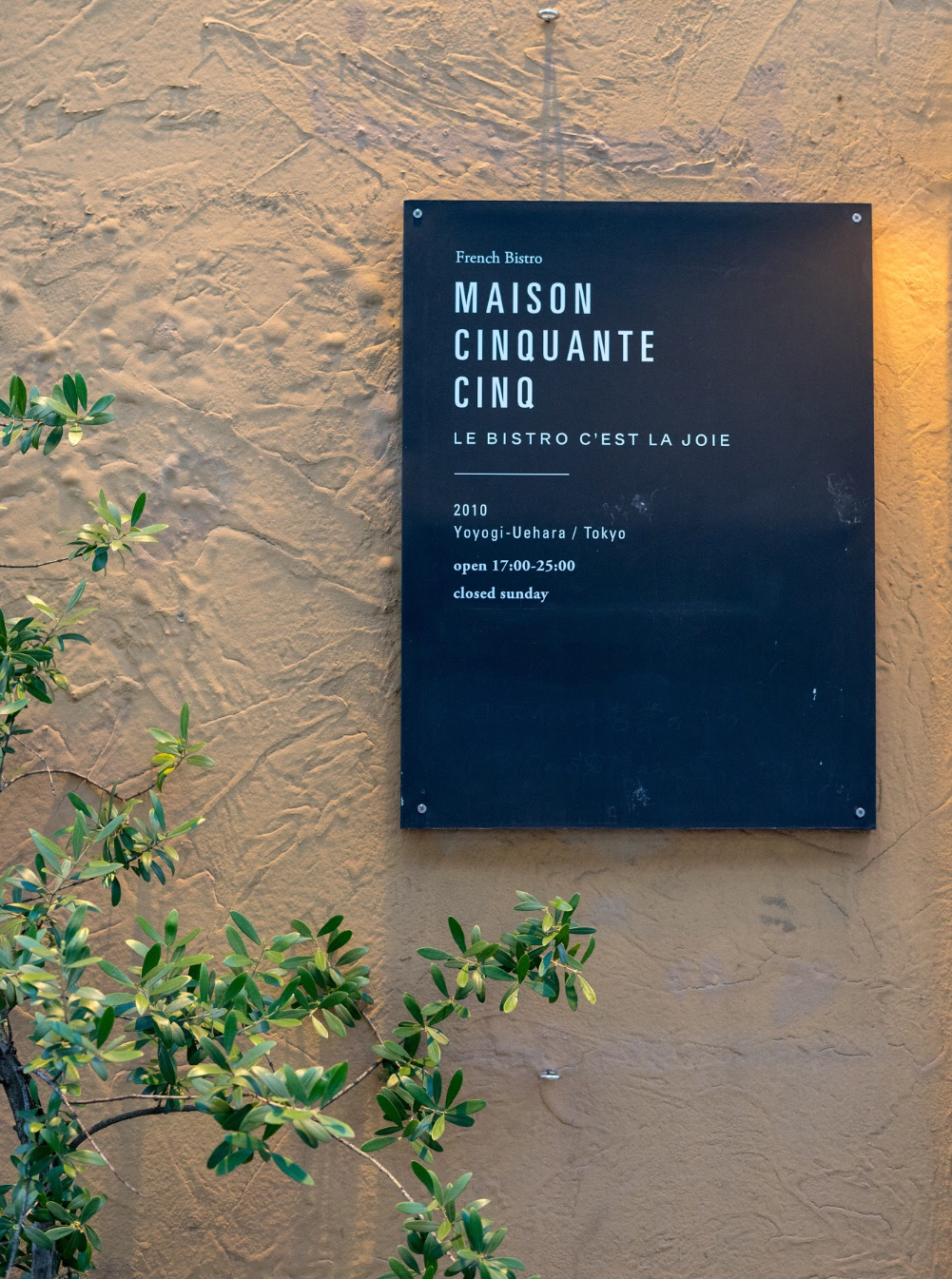 まずは、代々木上原駅からすぐ、徒歩1分のフレンチビストロ「MAISON CINQUANTECINQ(メゾンサンカントサンク)」へ。季節の食材と自然派ワインを取り揃えたカジュアルなフランスの居酒屋をイメージしたというこちら。店名は、フランスの名女優であり歌手のシャルロット・ゲンズブールの名アルバム「5:55」の呼び名からきています。