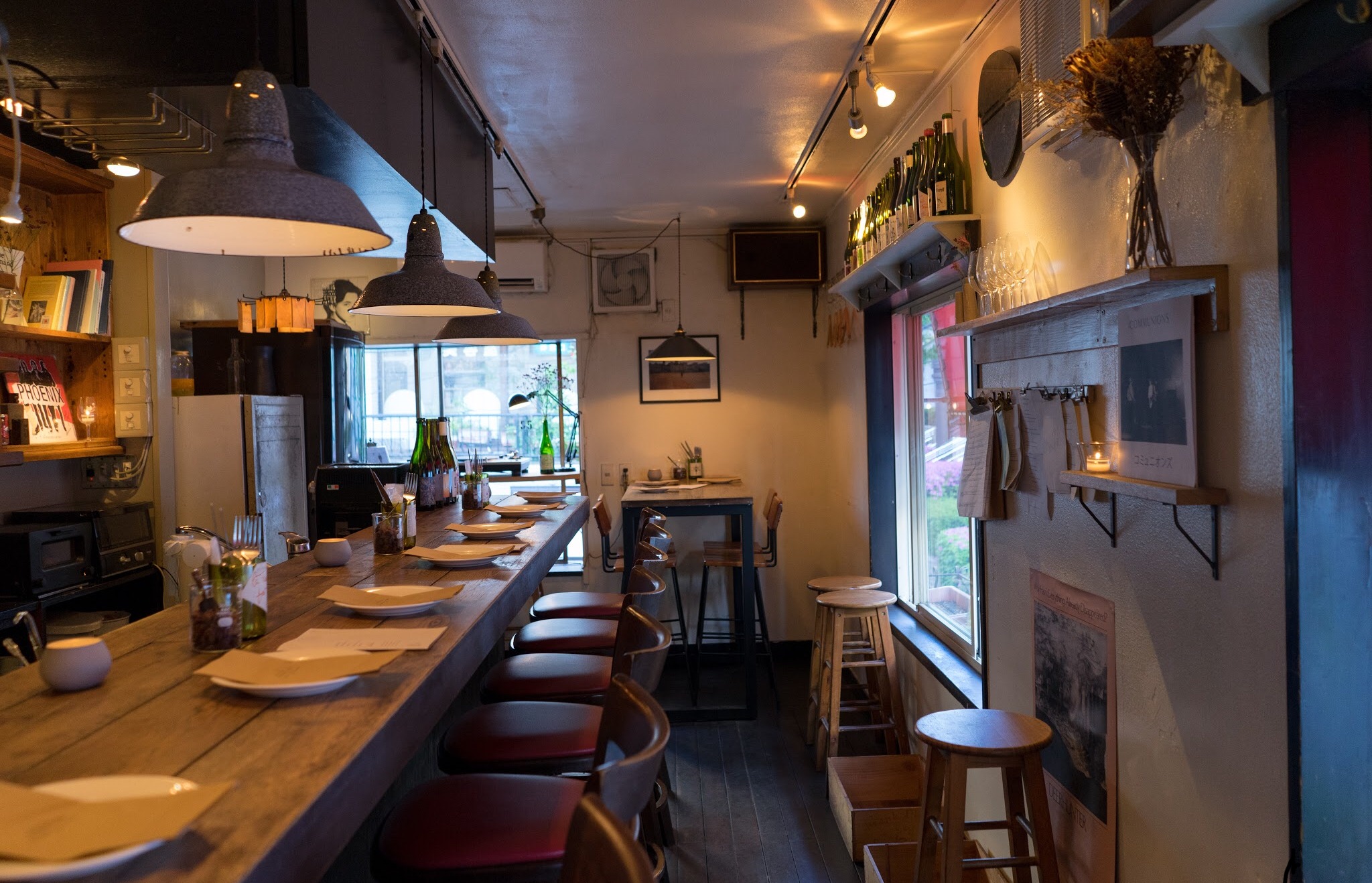 訪れる方がみな口を揃えて言うのが「このお店にいるとまるで本当のパリのビストロにいるかのよう」。(筆者もパリに訪れたことは一度しかないのですが)パリの地元の人たちが夜集まって気軽に語り合うビストロってきっとこんなかんじなのだろうと思わせてくれる、そんな店内です。