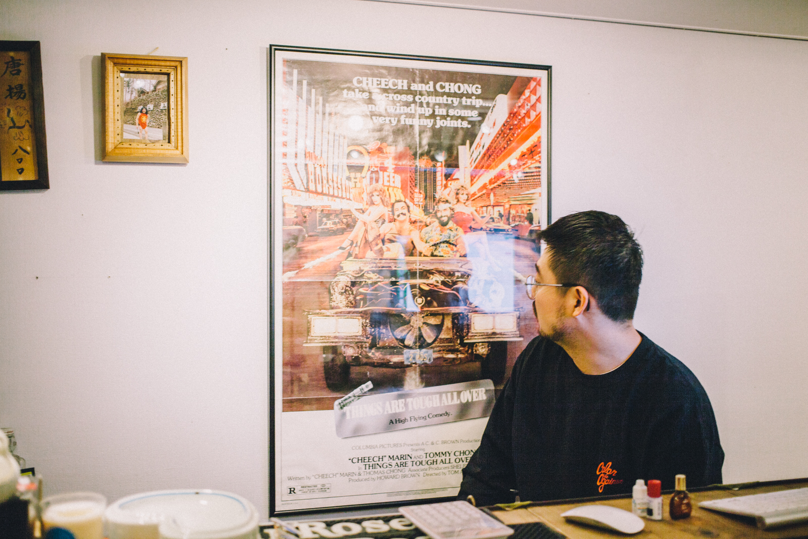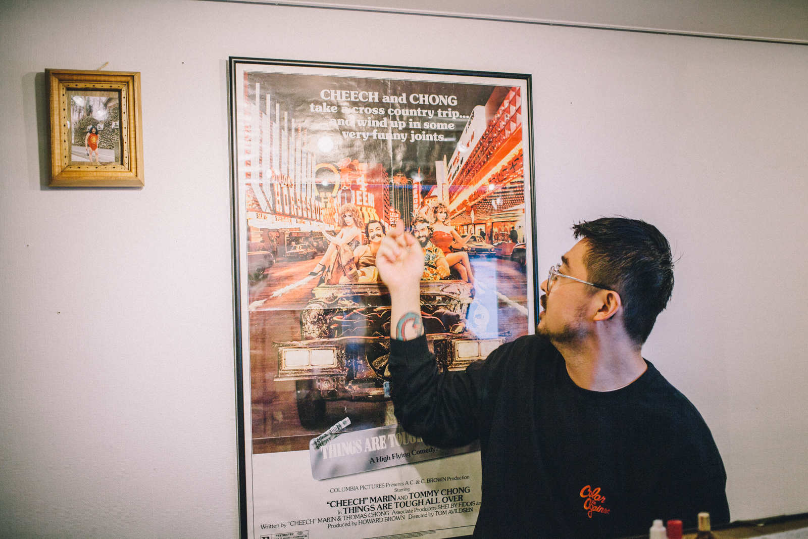 レジの後ろに貼ってあるポスターは「CHEECH and CHONG(チーチ&チョン)」のもの