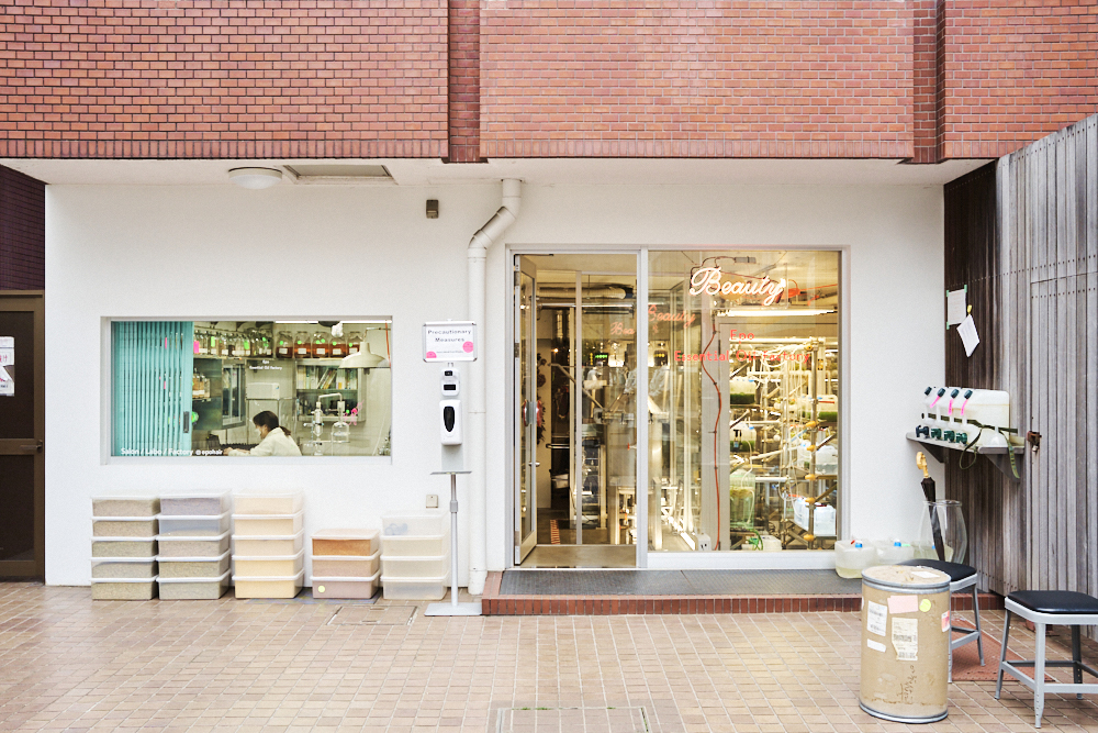 2018年12月にオープン。この独特な店舗スタイルは、EPO HAIR STUDIOの美容理念である“New Beauty”に基づいて導かれたカタチ。一般的なヘアサロンにある要素(カット台、シャンプー台、その他パーマなどの機材)に加えて、「ファクトリー」と「ラボ」のスペースが併設され、シャンプーやトリートメントをはじめとするサロンで使うプロダクト(ヘア剤)の開発・制作および、そのプロダクトに用いるハーブエキスの精製なども店舗内で行われている。