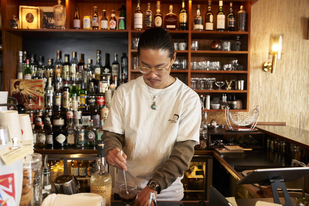 当初、バーテンダーとしてフグレン トウキョウでの勤務を始めた荻原さん。この日も手際良くカクテルを仕立ててくれました。フグレンでは、デイタイムでも酒類を楽しめます。金・土・日曜には、バータイムとしての営業時間帯も。