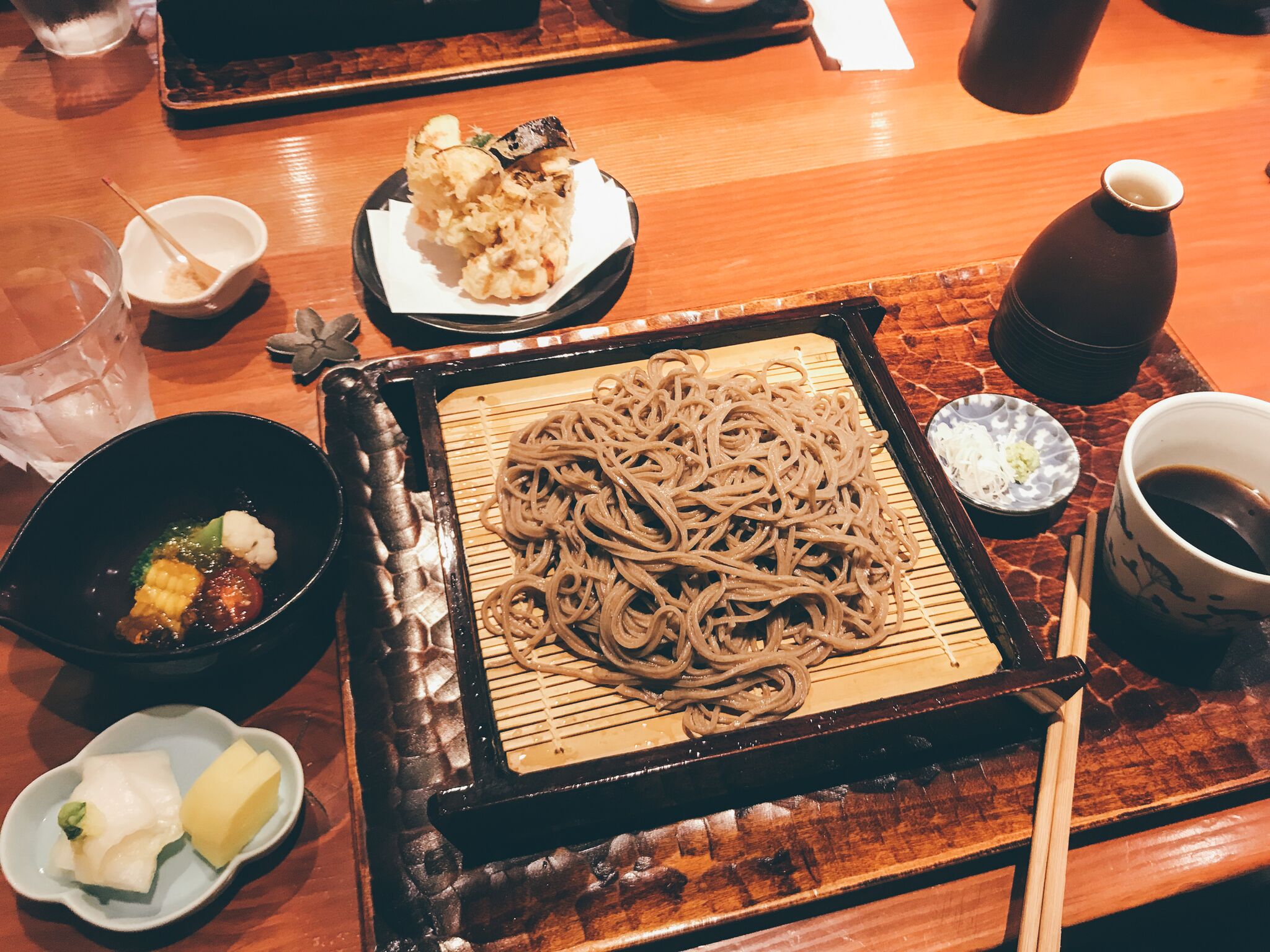 What may appear to outsiders like another version of ramen, soba noodles are actually the cooler (literally) buckwheat distant relative. If you’re in this area, this place does soba justice (or so I’m told by our hosts). The chilled noodles here are 100% homemade, you can taste the freshness! Expertly cooked for dipping and slurping up the tsuyu (soy sauce based dipping sauce). In our case, soba was the recommended hangover cure, and an ideal solution for a light lunch on a hot day. I enjoyed mine with a side of lightly fried tempura veggies and shrimp, which added some welcomed crunch to my lunch. If you’re like my boyfriend and not a fan of cold savory dishes, you can also get your soba noodles hot in a tasty broth. At this popular lunch spot, everyone wins!