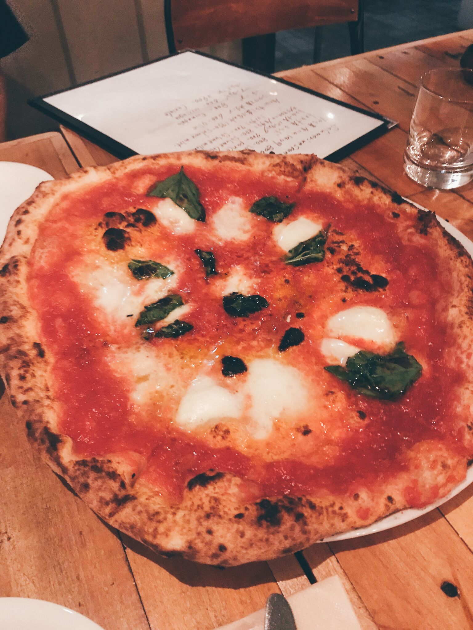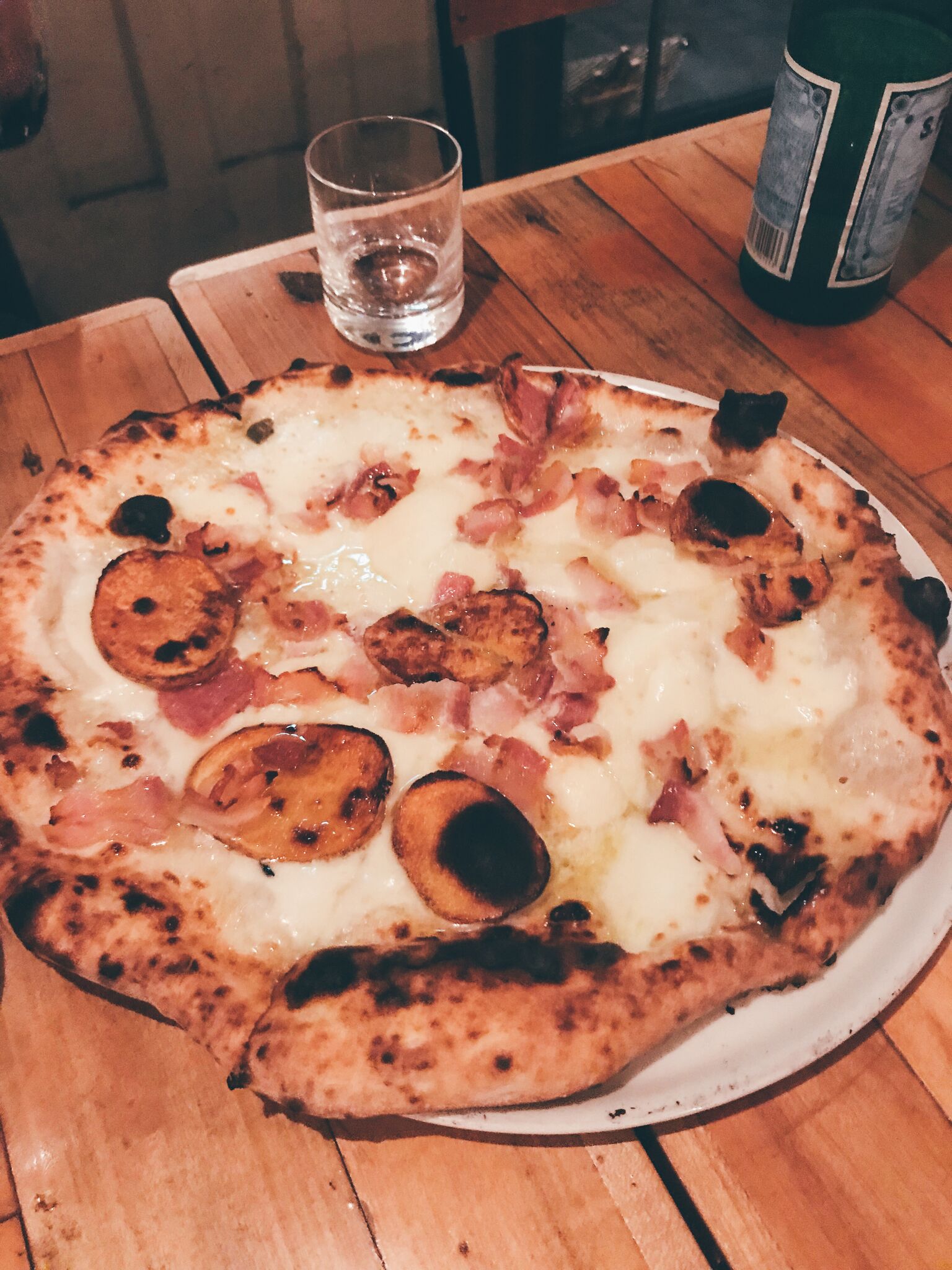 We enjoyed a classic Margherita pizza and a potato and bacon pie alongside some fried zucchini, all of which really hit the spot. This hip joint appeared to be the sole restaurant on this otherwise residential block.