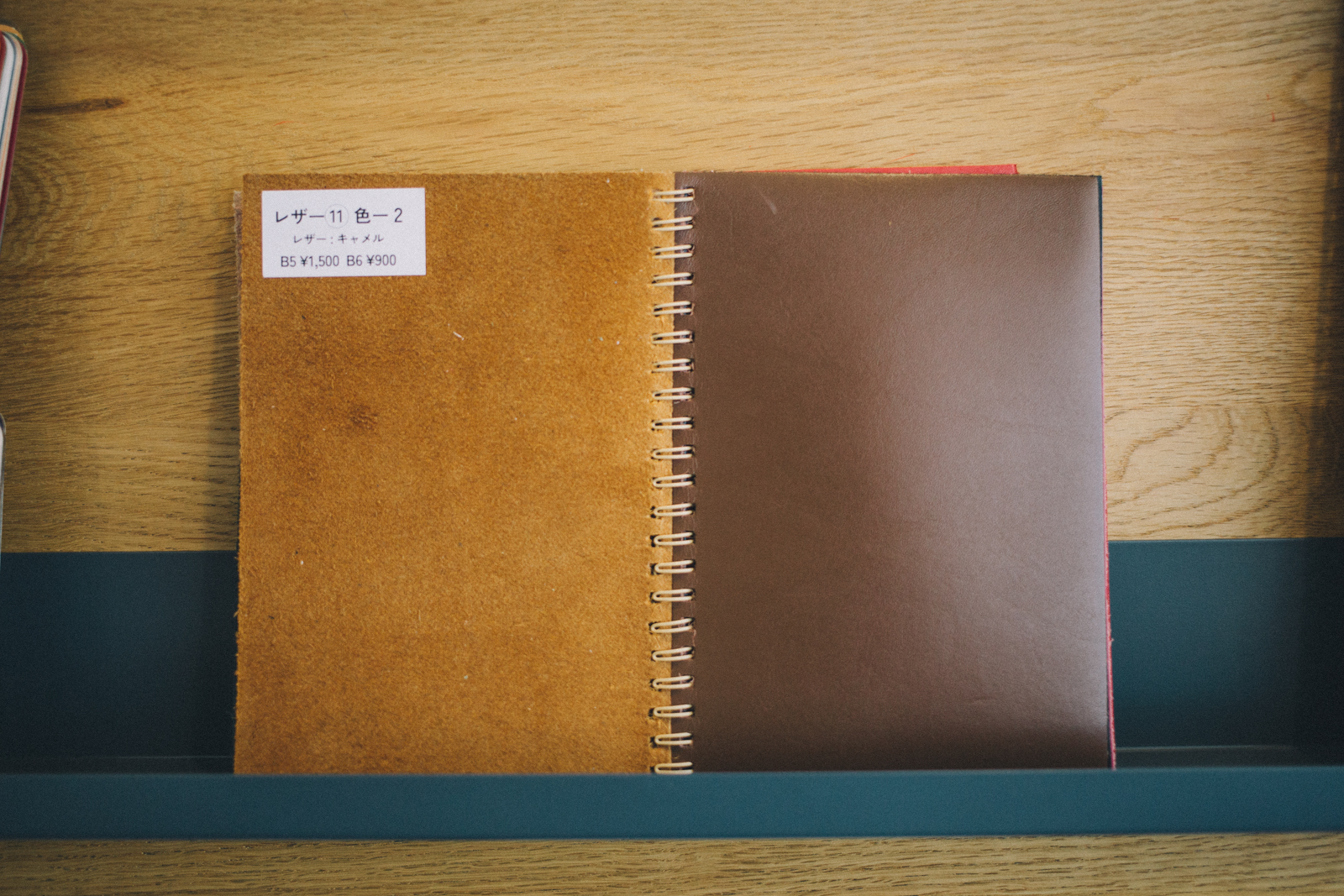 紙だけでなく、レザーの表紙も選べます。(B5 ¥1,500 / B6 ¥900)