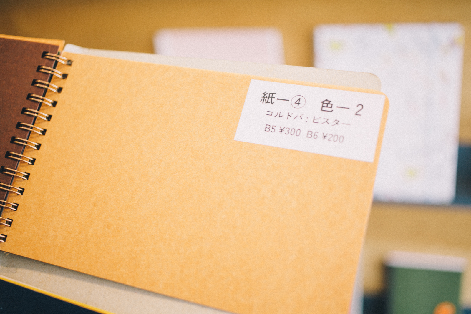 さまざまな表紙や、中面の紙を収納している棚があったり