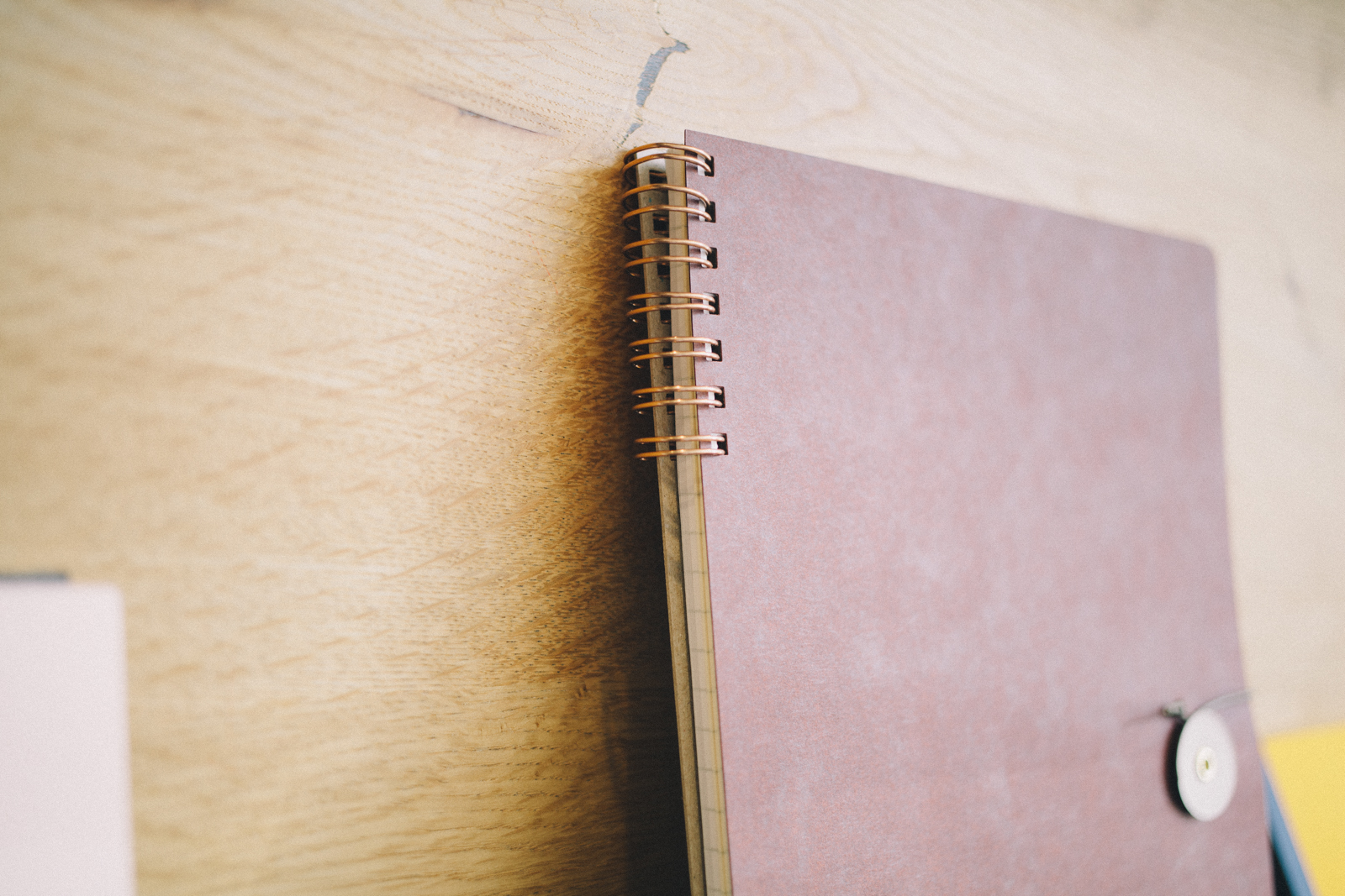 表紙は、独特の手触りと、紙だけど革のような質感・色味の「コルドバ」。裏表紙は、膝の上や手持ちでも書けるよう、厚紙にしました。