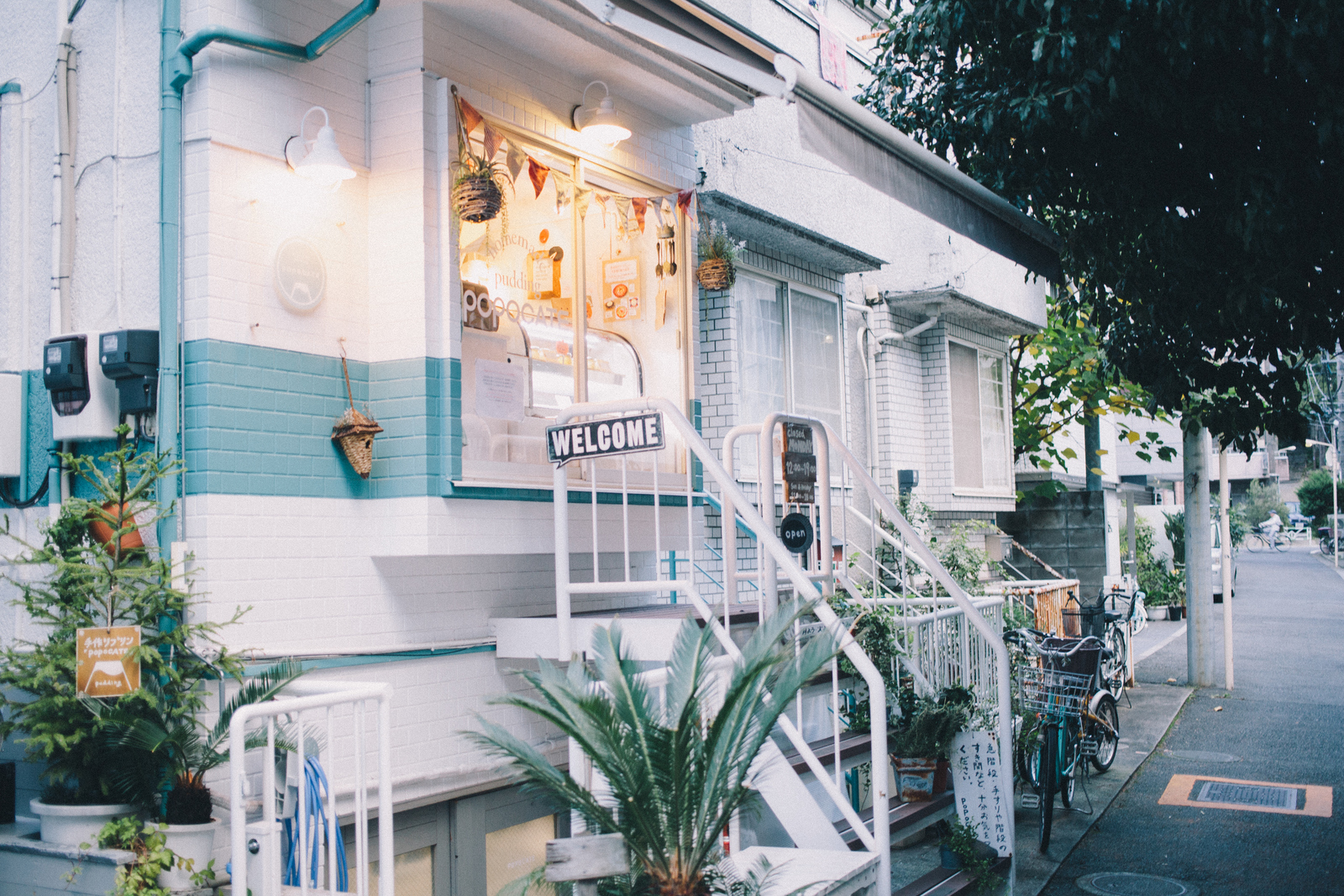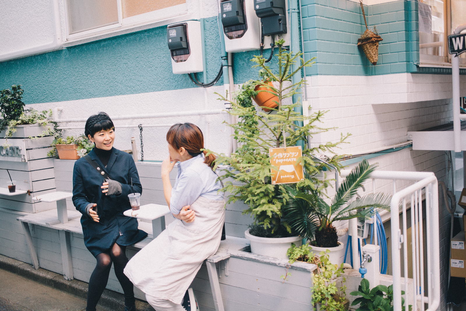 半地下の1Fでプリンをつくり、2Fで販売という構造は、真也子さんが主体となって物件を改築し、独自につくりあげたもの。階段やベンチ、外壁のペイントなどもほとんどDIYとのこと。