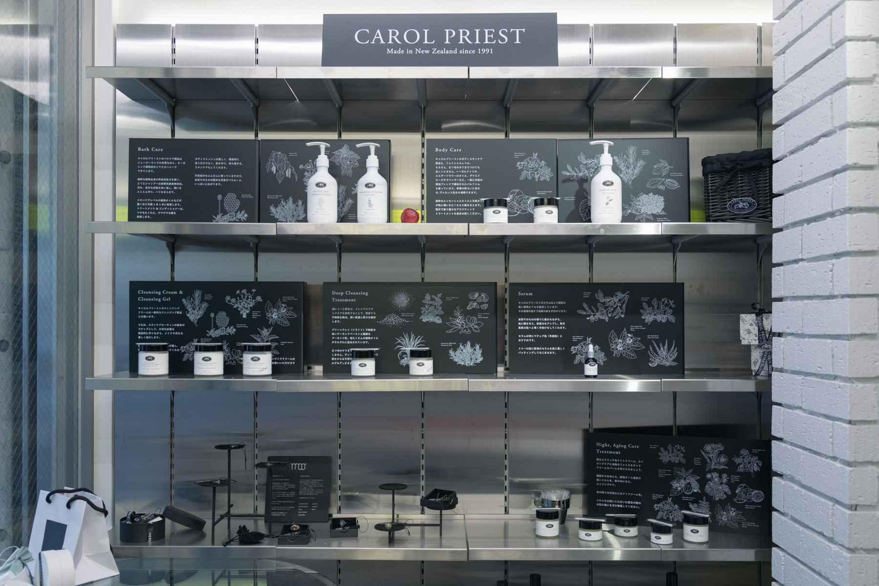 店内は他ブランドのジュエリーなどにとどまらず、オリジナルブランドの洗剤を始め、洗濯という行為を楽しむため道具が幅広いラインナップで取り揃えられています。