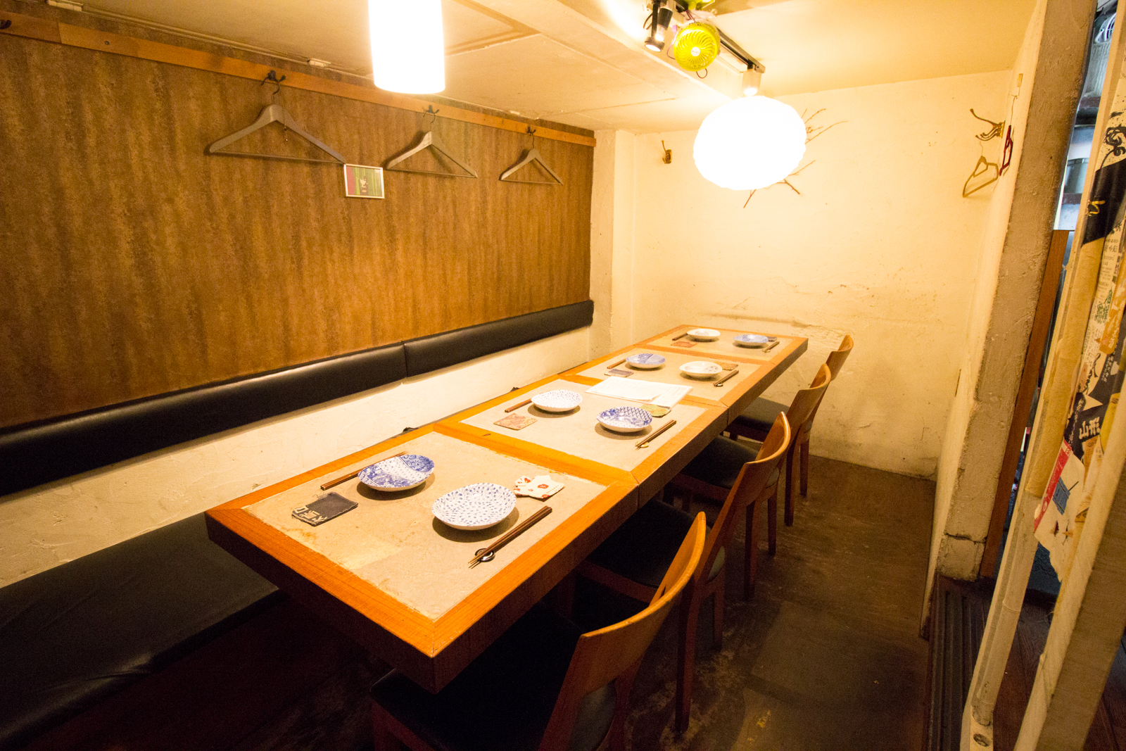 居酒屋があまり多くないといわれる上原のなかで、特に珍しい“コの字型”のカウンター。相馬さんはこのカウンターに惹かれてこの物件での出店を決めたそう。「上原の人はあまりカウンターを好まない、という話を事前に聞いていて。実際にオープンしたらその通りで、テーブル席のほうがよく埋まっていました。ただ、一度座ってみてからは徐々にカウンター派になる方も増えてきていて嬉しいです」