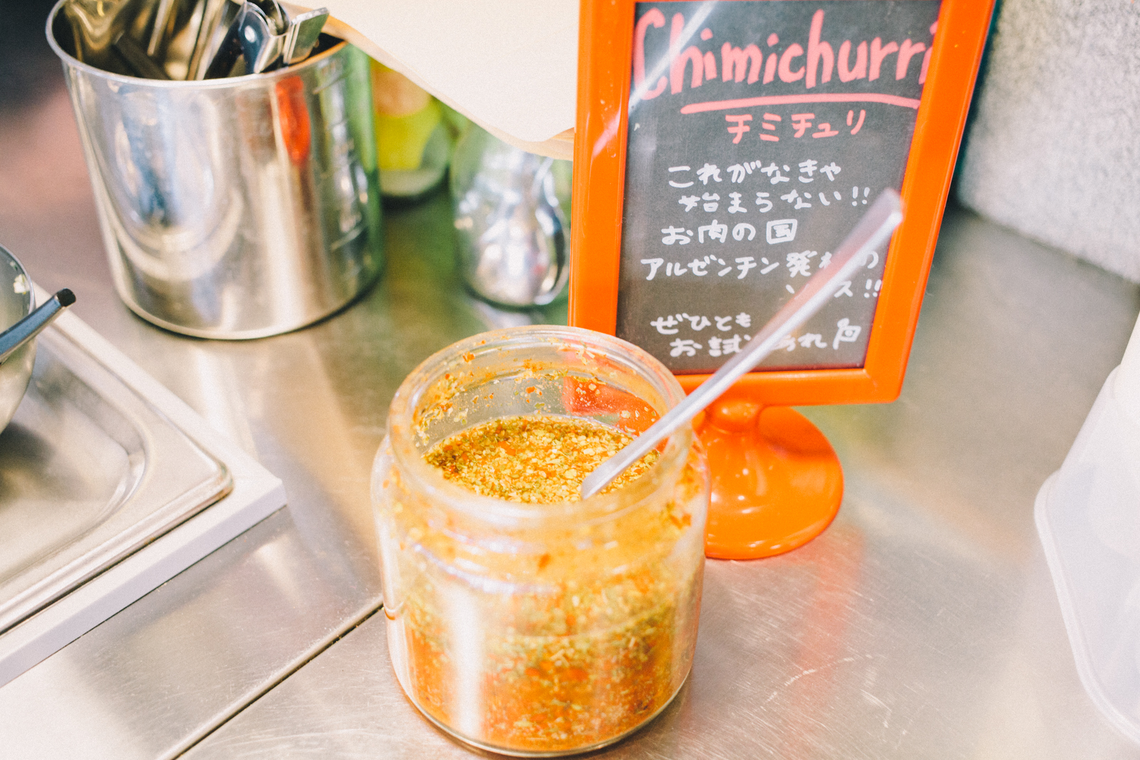 続いてチョリパンに欠かせないのが、アルゼンチン発祥のソース「チュミチュリ」。ビネガーとオイルにさまざまな香辛料やスパイス、ハーブを混ぜ合わせたソースで、肉料理全般に使われるのだそう。アルゼンチンではどのレストランにも常備され、家庭ごとにレシピがあるのだとか。