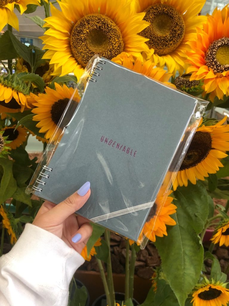 彼女を悩ませたのはノートの印象を決定づける表紙の素材と色だった。今回のアルバムジャケットからインスパイアされたノートにしようということになり、紆余曲折した結果、アッシュグレーの表紙に、パープルの箔押しで、タイトルの「Undeniable」の文字を入れようという流れに。