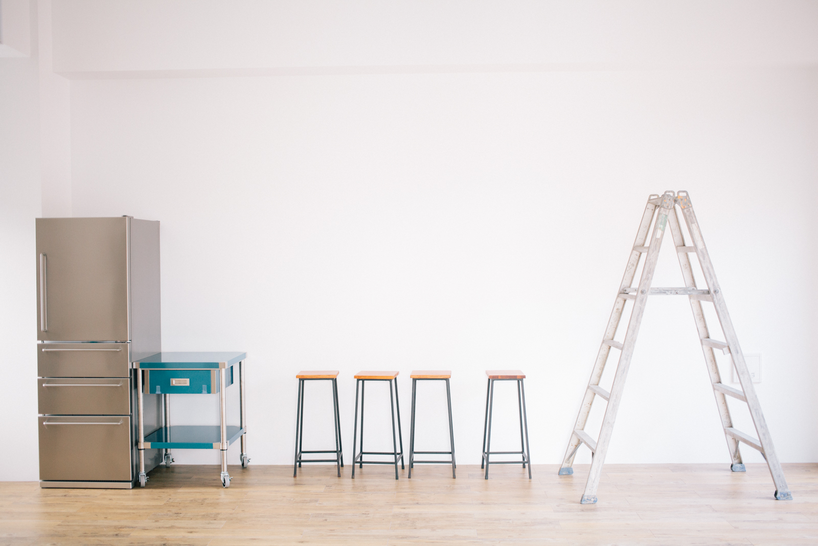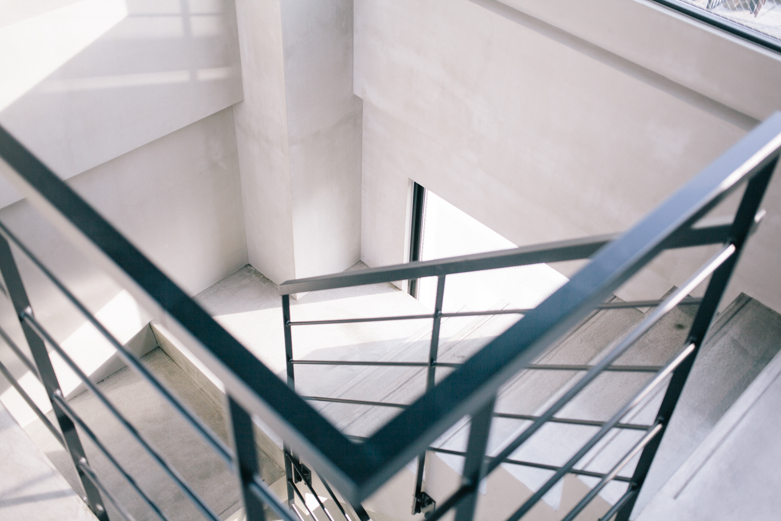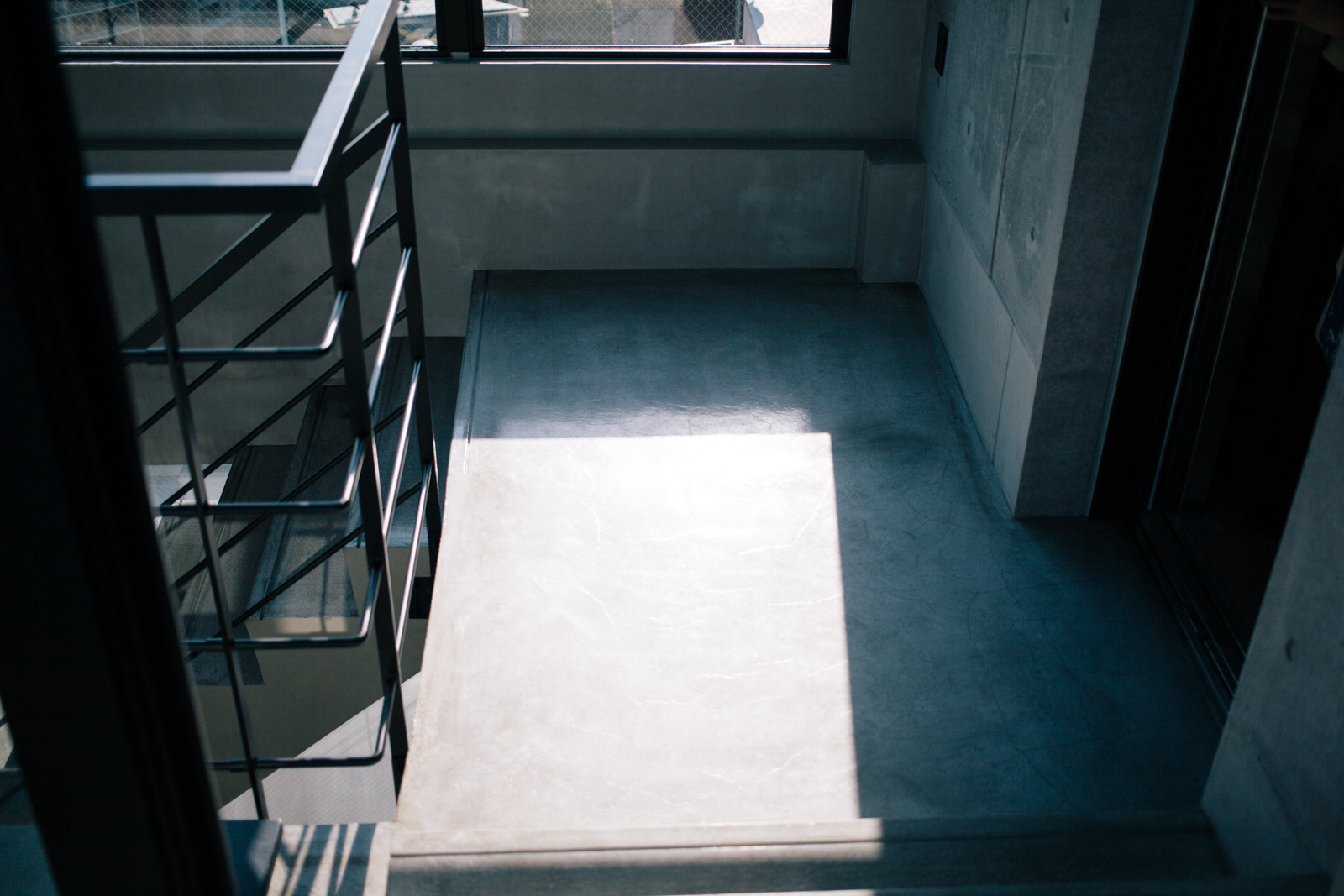 屋上のひとつ下の階は、インダストリアル&ミニマルなスペース。撮影スタジオのほか、メイクスペース、バルコニー、トイレやシャワールームなども備えておりロケ撮影の控え室等にも良い。