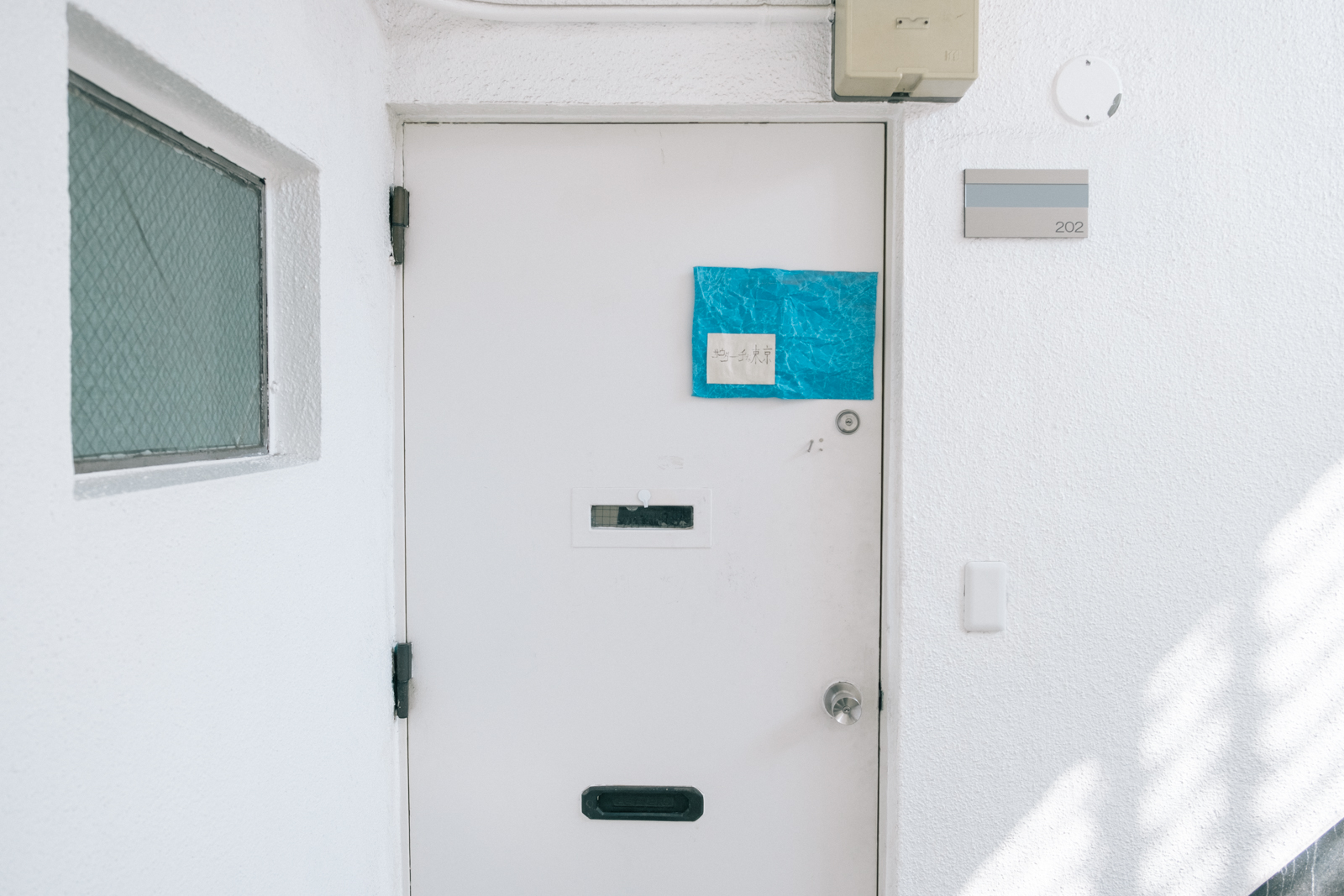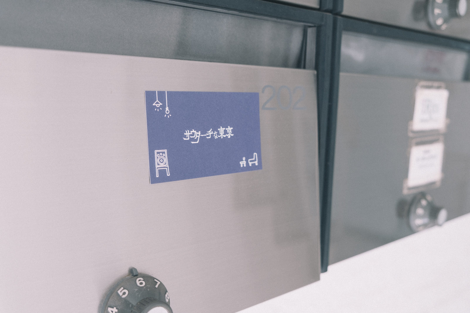 看板などはありませんが、202のポストや扉に「サウダーヂな東京」とさりげなく掲げられています。