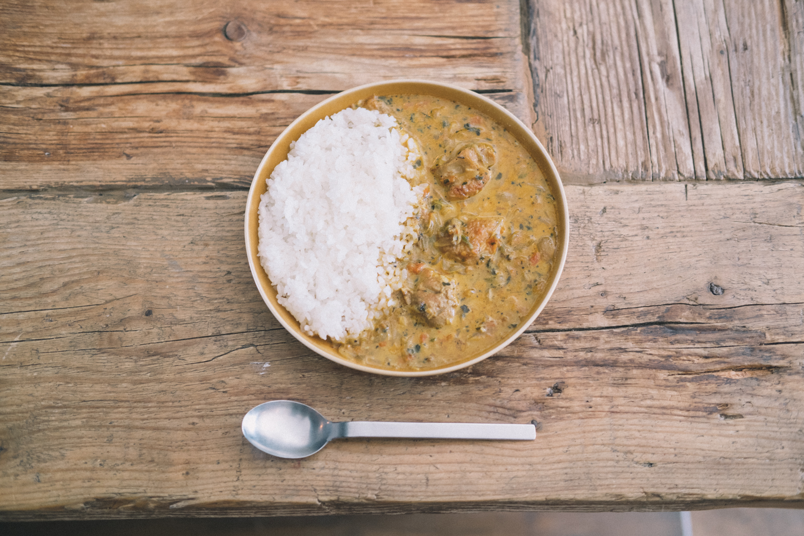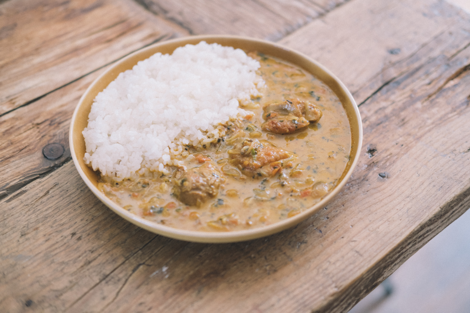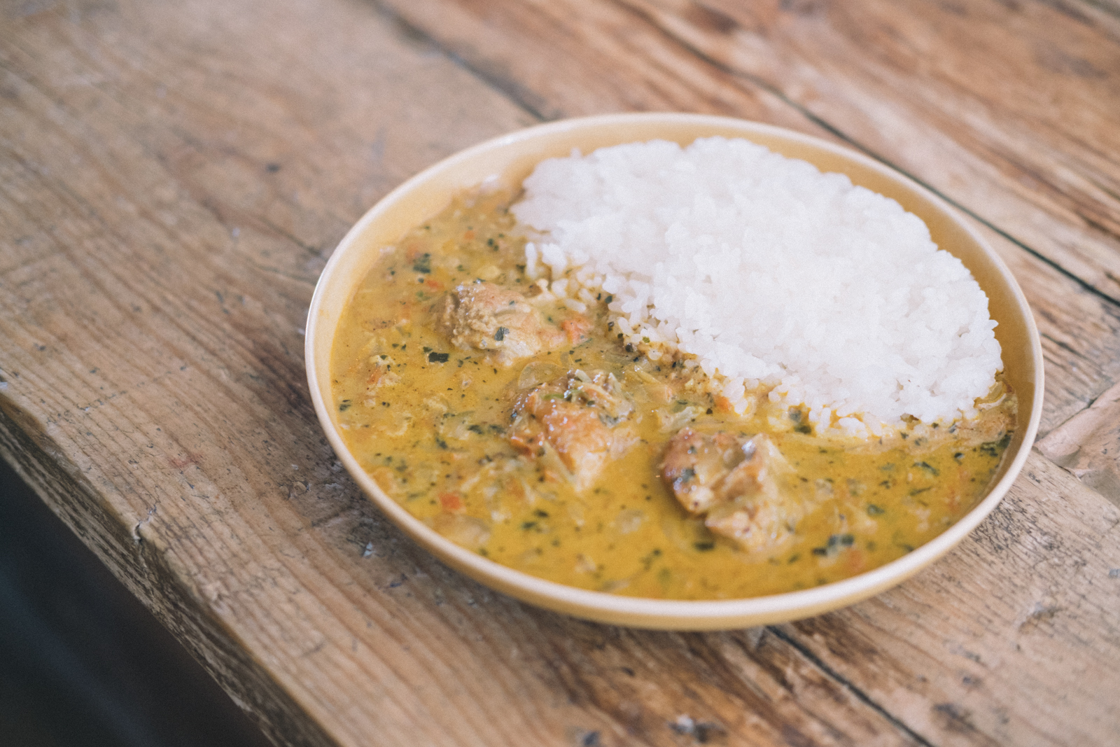 ひとくち食べると、スパイスの豊かな香りと、野菜やお出汁の旨味、ココナッツミルクのやさしさが口に広がります。スパイスも多くの種類が入っているようですが、辛さよりも繊細な旨味や香りが際立っていて、調和具合に目を丸めていると「気づかれる方も多いですが、生姜が多めに入っているんです」とボボさん。