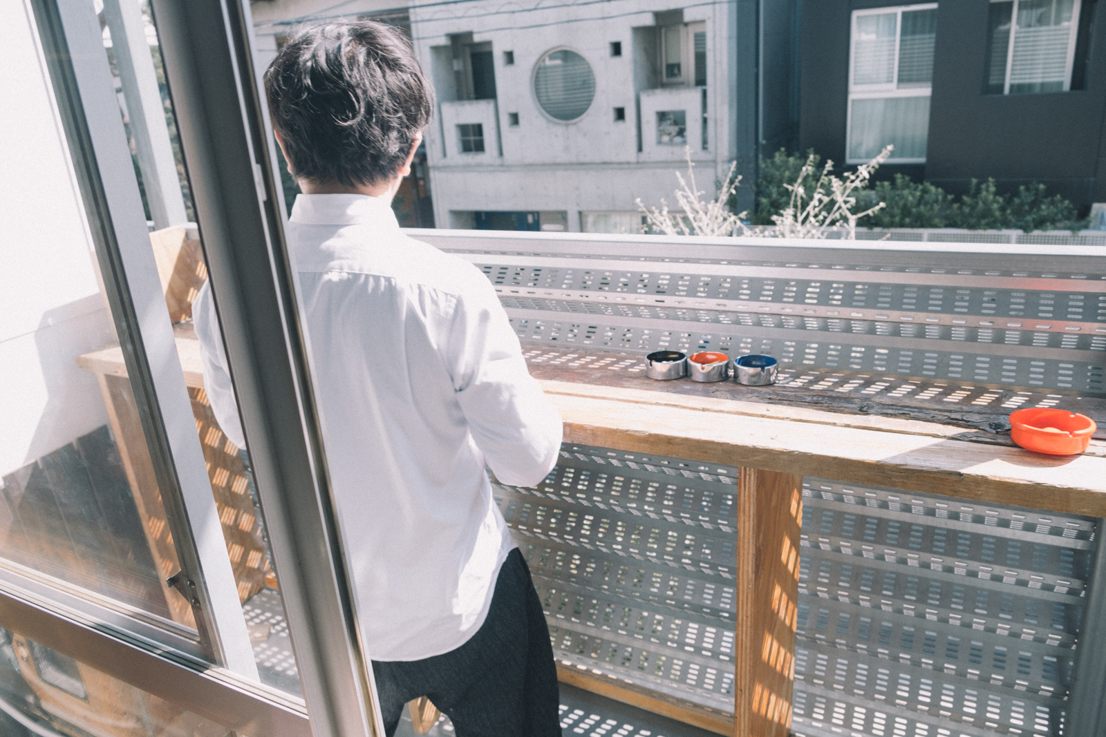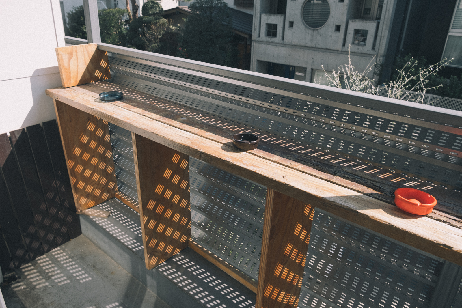 喫煙スペースでもあるベランダ。夕方16時からのオープンなので、夕暮れどきに黄昏れるのも乙な過ごし方