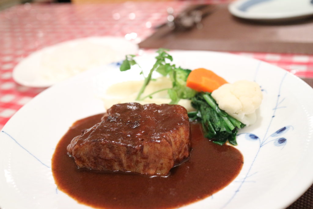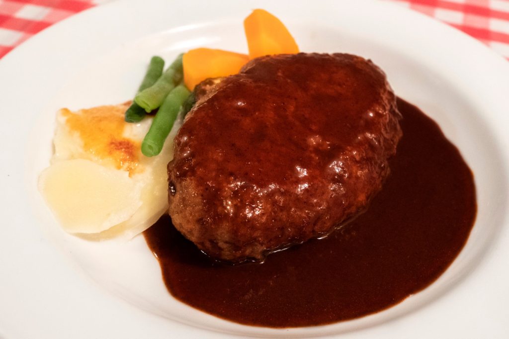 「デミグラスソースのハンバーグステーキ」は、創業当初から今でも関口亭の看板メニュー。