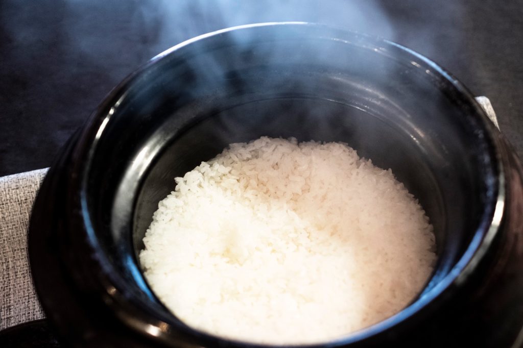 白い御飯と味噌と醤油にこだわる店として、ディナータイムでは「中川一辺陶の土鍋」で炊いたご飯が食べられます。
