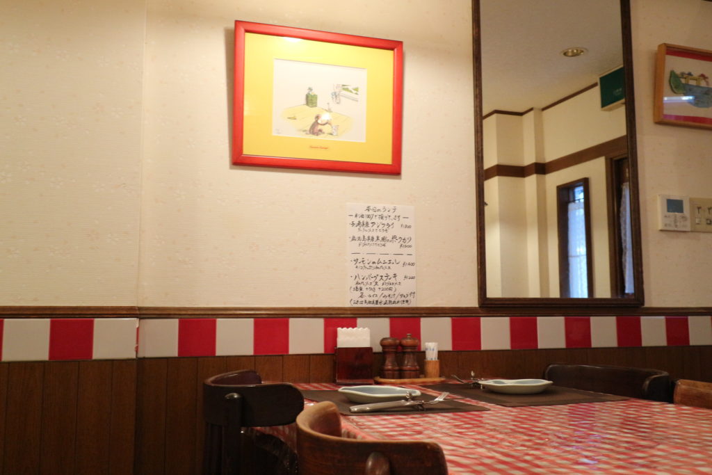 1993年からこの街で洋食屋を営んでいる関口亭の店内は、赤と白のギンガムチェックのクロスがかけられたテーブルが並んでいて、まさに「街の洋食屋さん」といったレトロな雰囲気がたまりません。