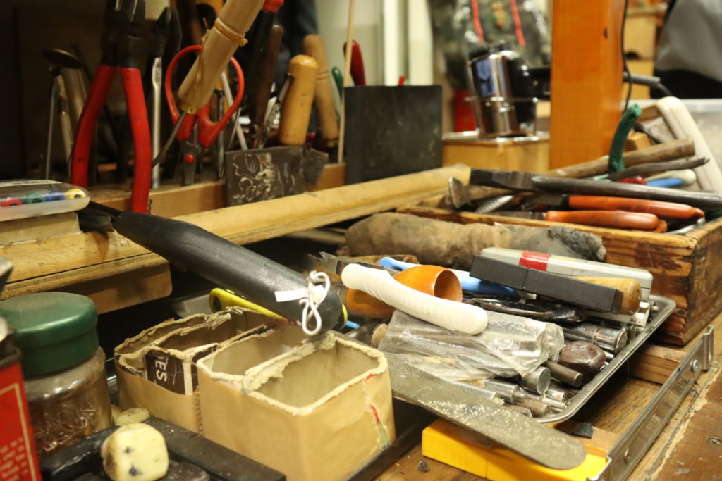 サラリーマンだと職場で酒を飲むことはないかもしれませんが、昔の職人たちはそうやって師弟関係を築いていったものです。彼らが工房で金づちを叩く音を聴きながら、技術が上達するのを見届けつつ、たとえ安価な修理でも絶対に手を抜かないように指導しています。