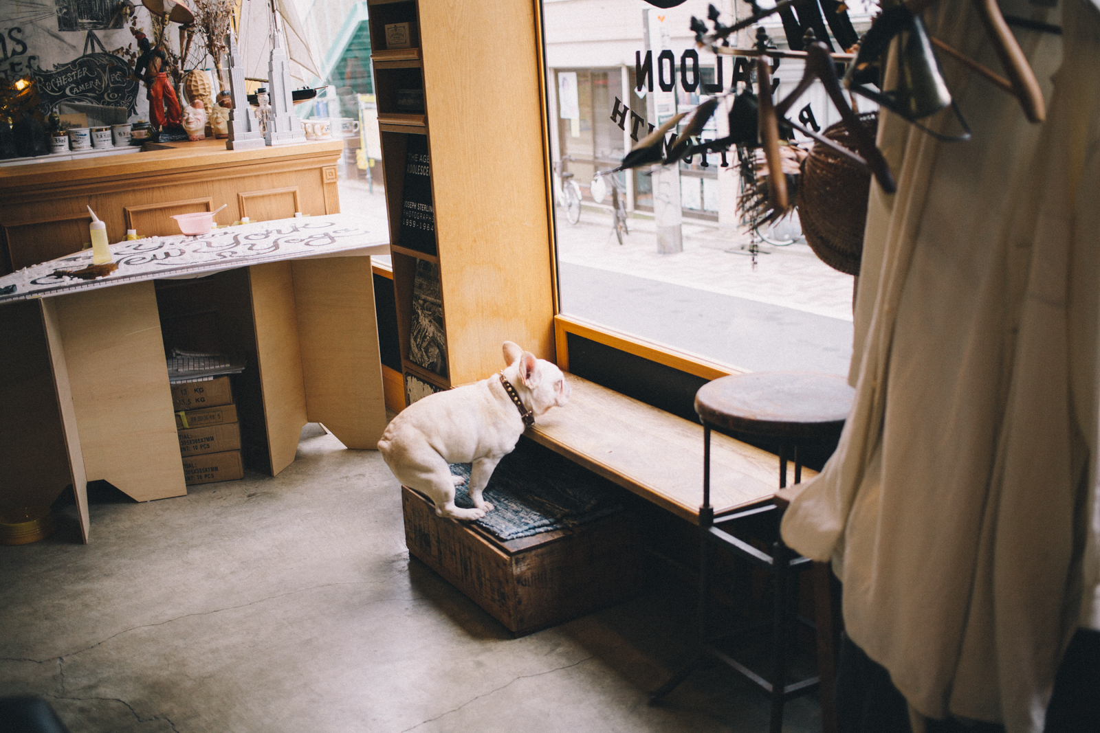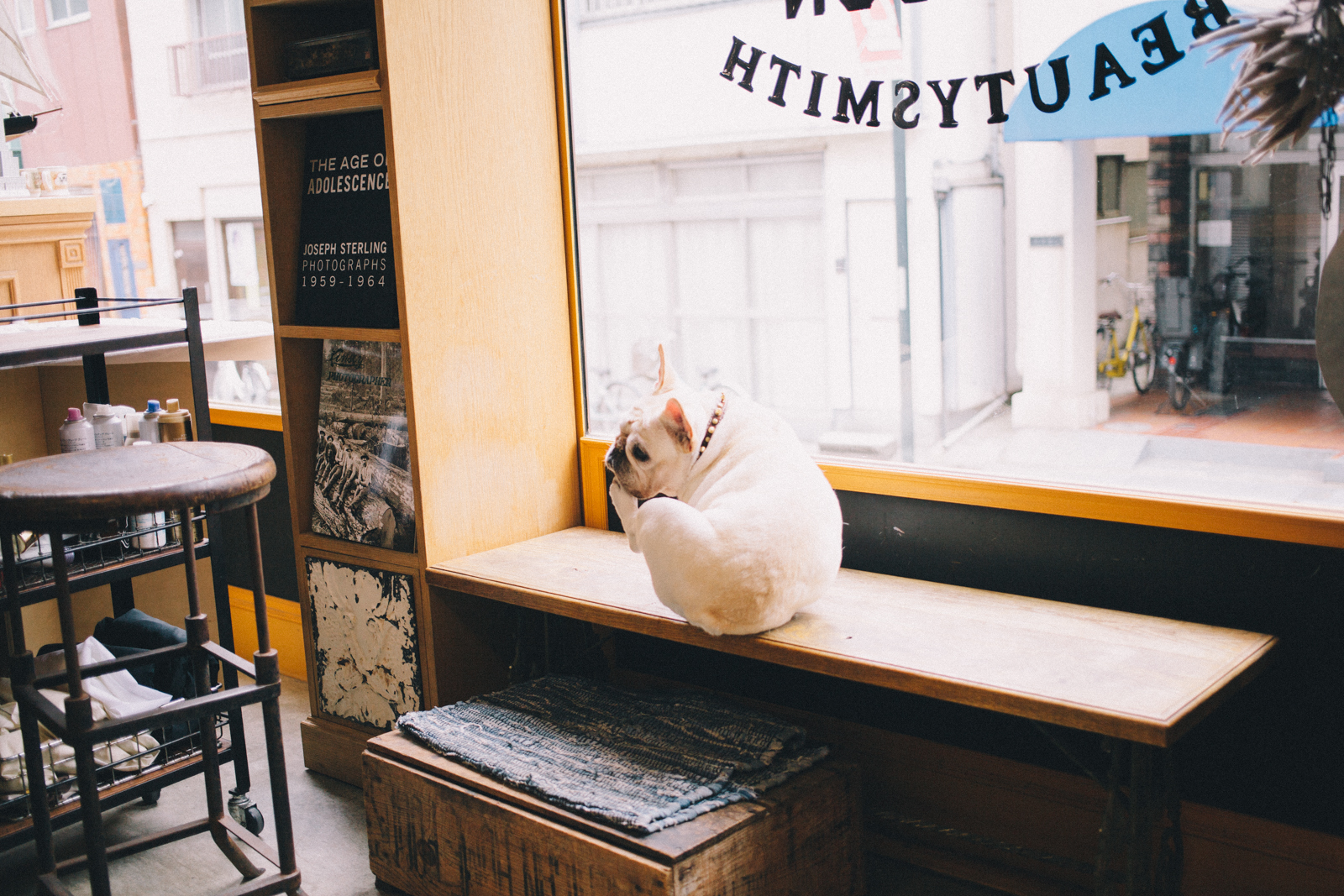 「スピークイージーというサロンにいる、フレンチブルドッグのワンちゃんが超かわいいんです。ずっと外を眺めてて、通りがかった人がワーって手を振ったりすると、ずっと吠えてる(笑)。自分も含め、つながりのあるブランドやお店の人も、よくそこに髪を切りに行ってて。サロン自体の雰囲気も最高なのでぜひ遊びにいってみてください」ーColor at Against(カラアゲ)高橋さん