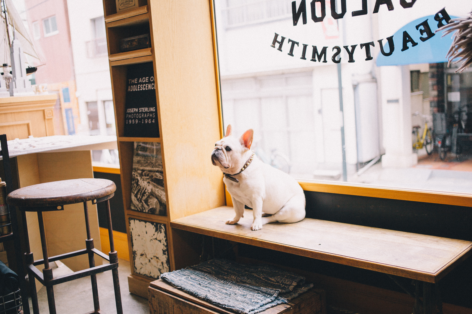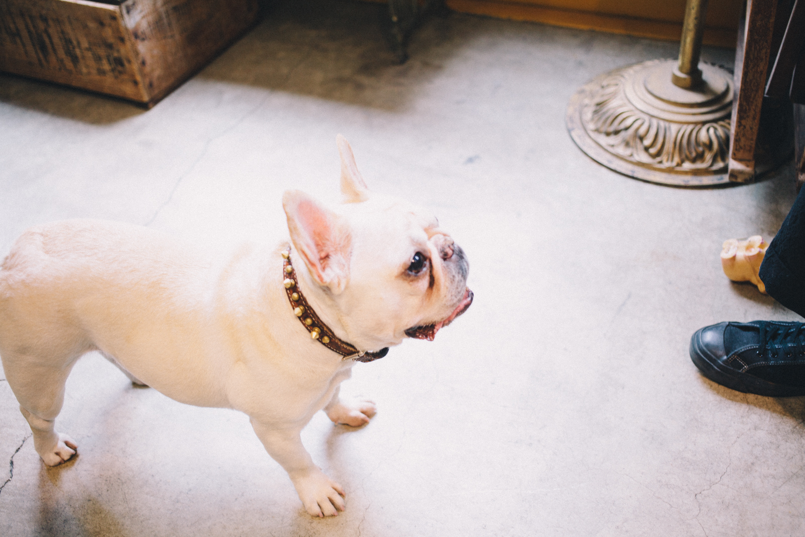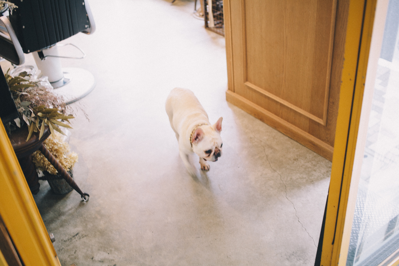 今回の主役は、「Color at Against(カラアゲ)」オーナーの高橋さんからご紹介いただいた「SPEAKEASY SALOON BEAUTYSMITH(スピークイージー サルーン ビューティースミス)」の看板犬、フレンチブルドッグの「ナティー」です。