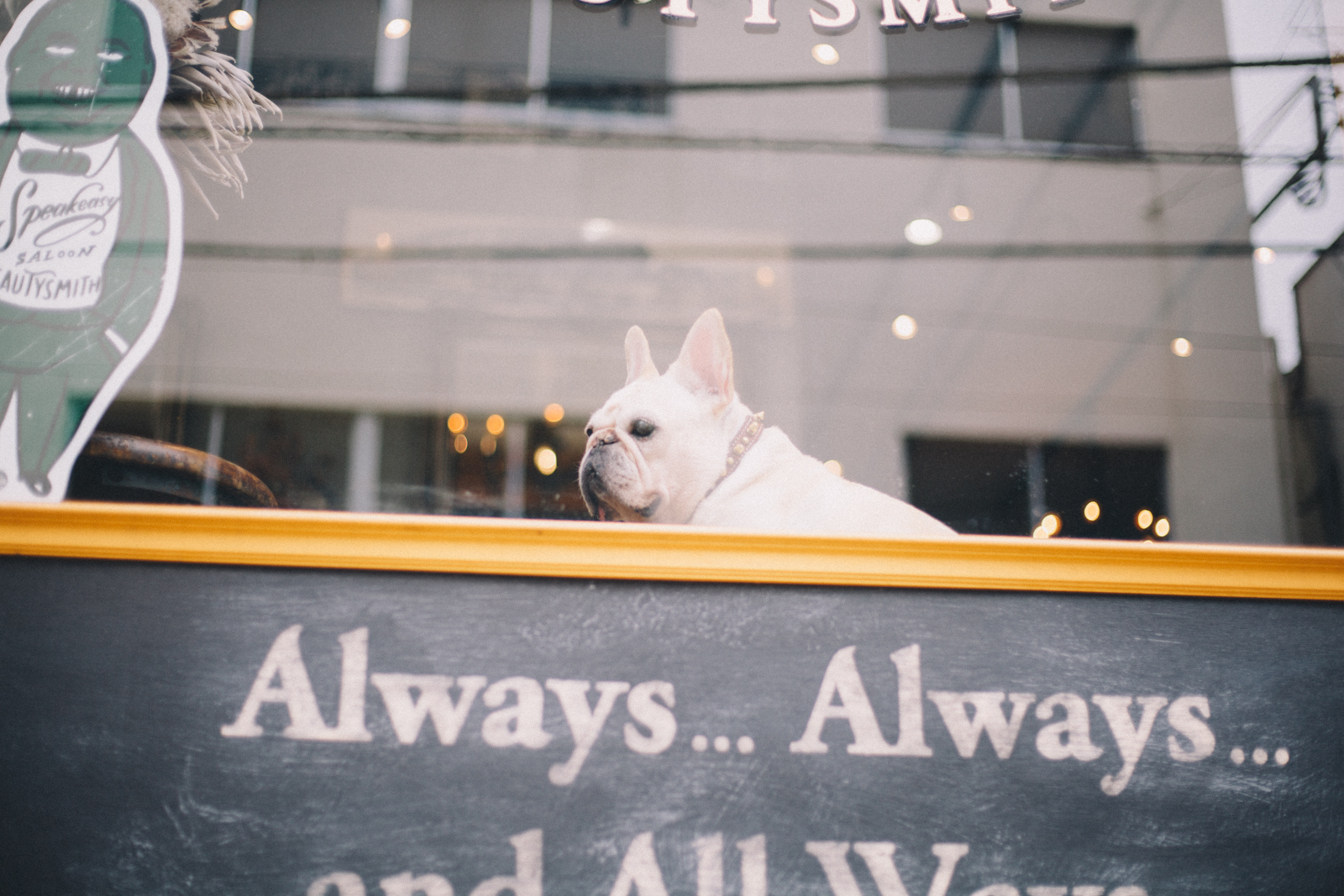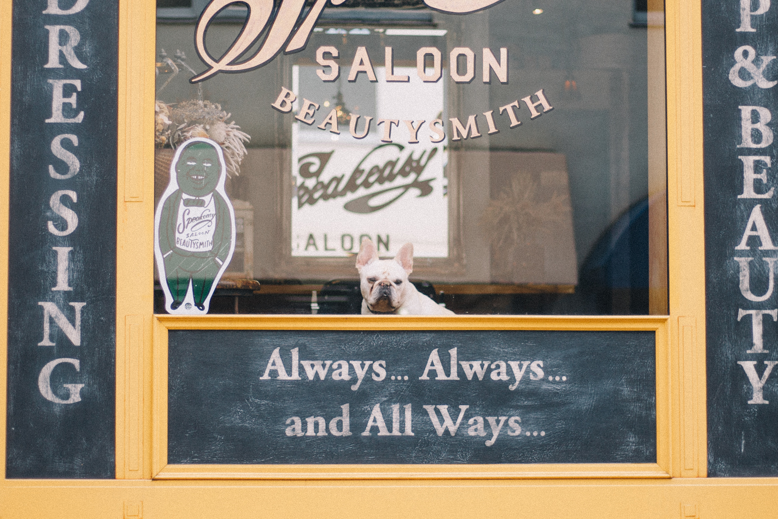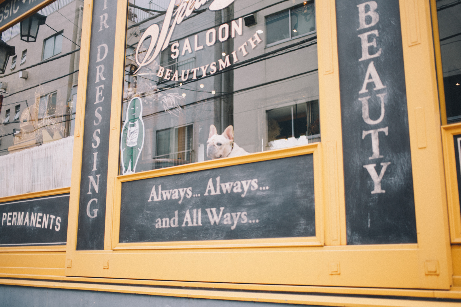 今回の主役は、「Color at Against(カラアゲ)」オーナーの高橋さんからご紹介いただいた「SPEAKEASY SALOON BEAUTYSMITH(スピークイージー サルーン ビューティースミス)」の看板犬、フレンチブルドッグの「ナティー」です。