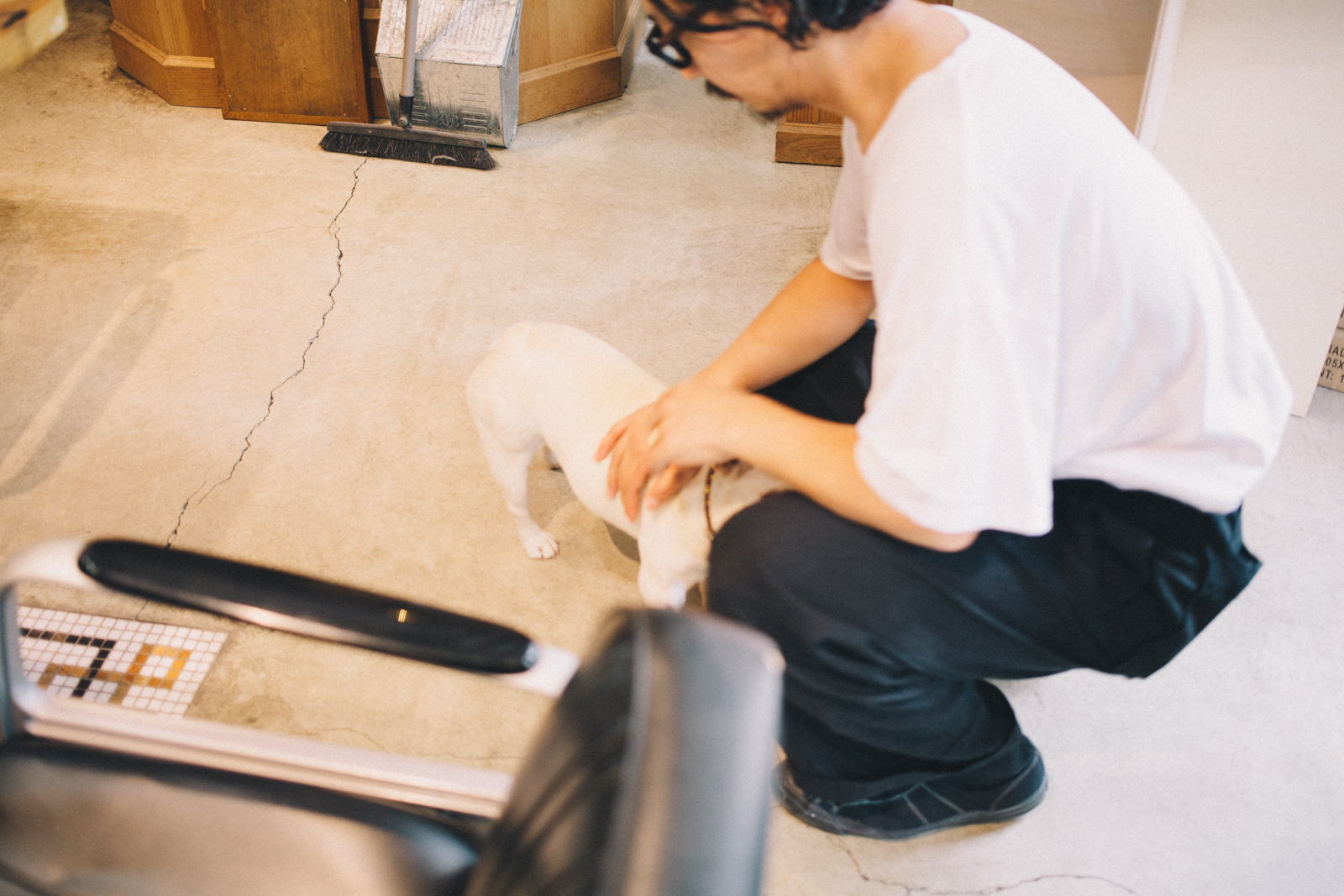 犬が好きなお客さんにとっては、癒やしを与えてくれているかなと思います。僕たちにとっては、そこにいることが当たり前になっているのですが、たまにシャンプーのためにペットショップに預けていてお店にいないと、あれ、、なんだかすごく寂しいぞ….!となります。