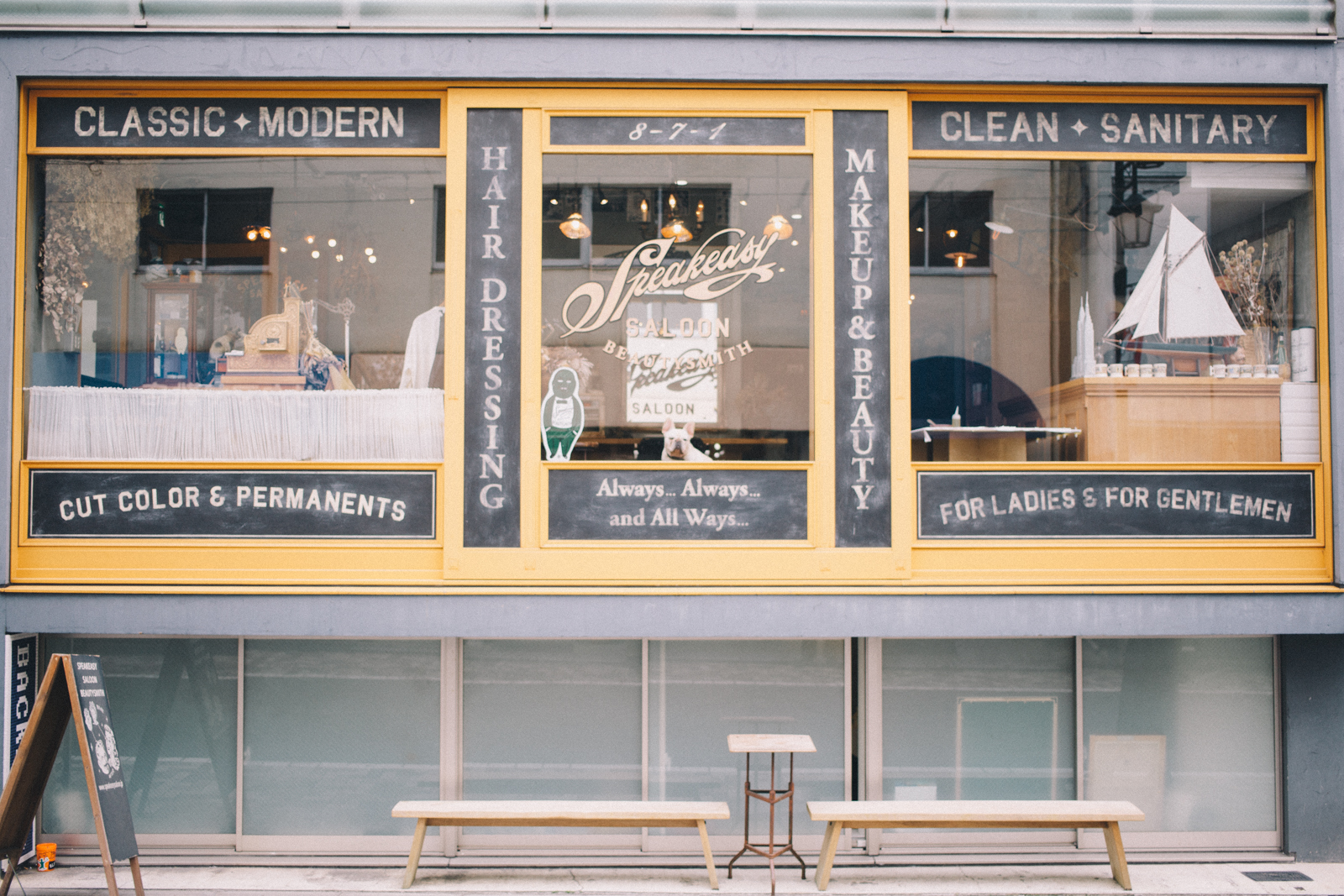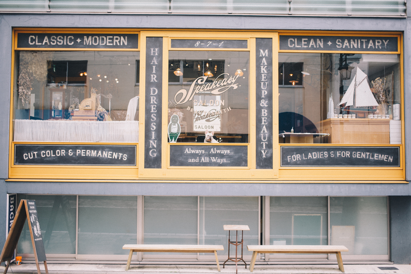 代々木上原と代々木八幡をむすぶ地蔵通り商店街にあるサロン「SPEAKEASY SALOON BEAUTYSMITH(スピークイージー サルーン ビューティースミス)」。真ん中の窓をよくみると、、