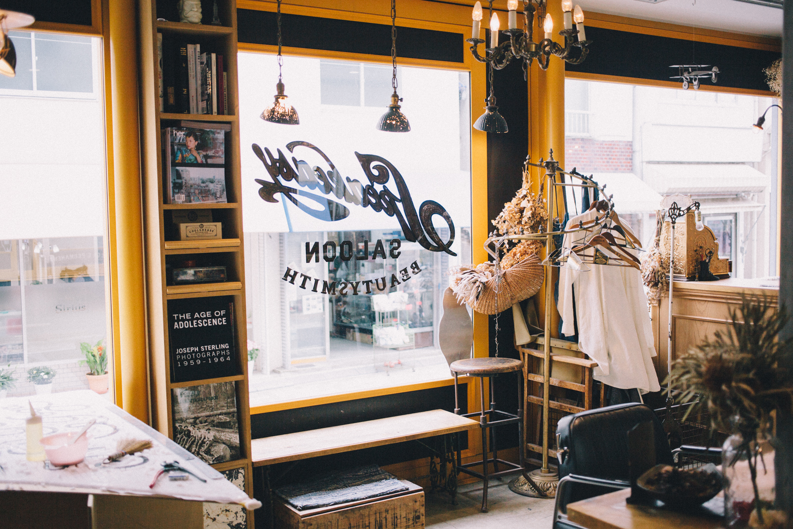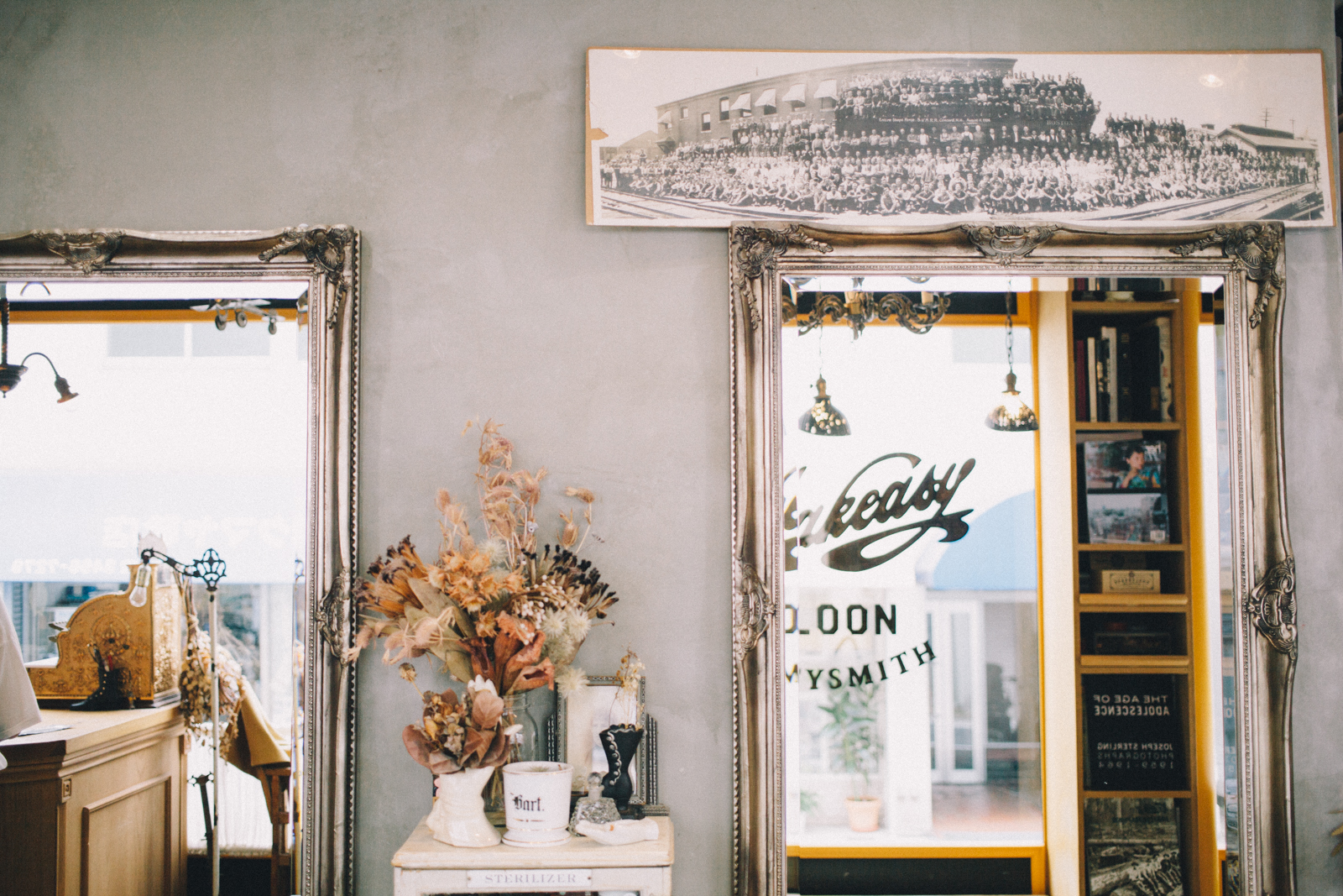 「SPEAKEASY SALOON BEAUTYSMITH」は当時のもぐり酒場をコンセプトにしたビューティーサロン。店内の什器なども当時のアンティークをそろえ、かくし扉を設置し1920年代アメリカにあったであろうサロンの空気感を再現しています。